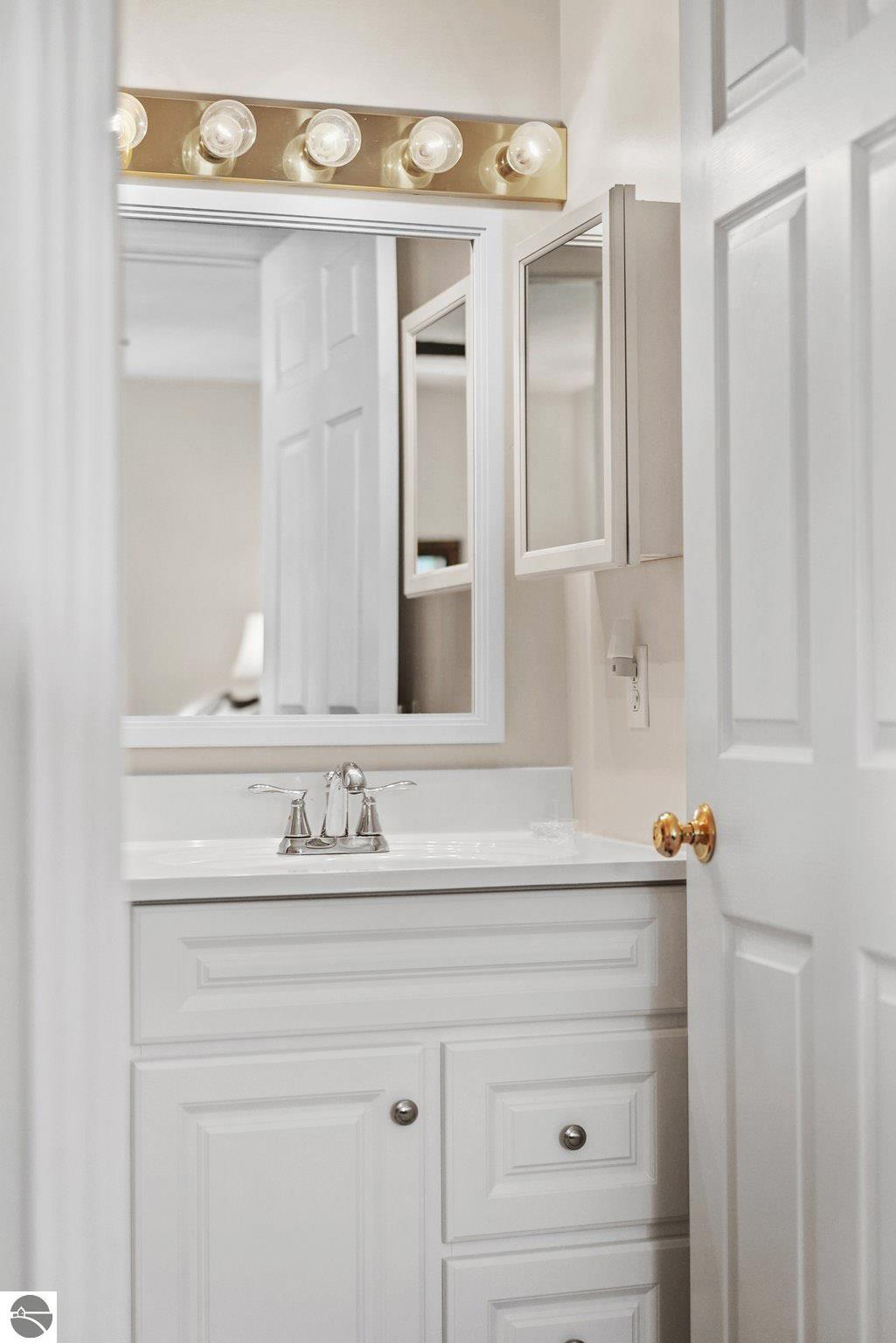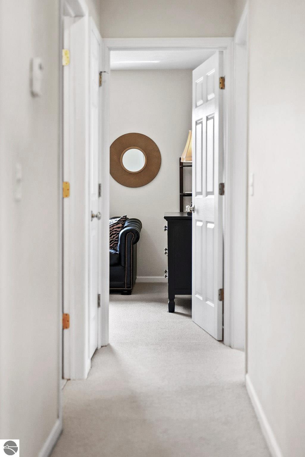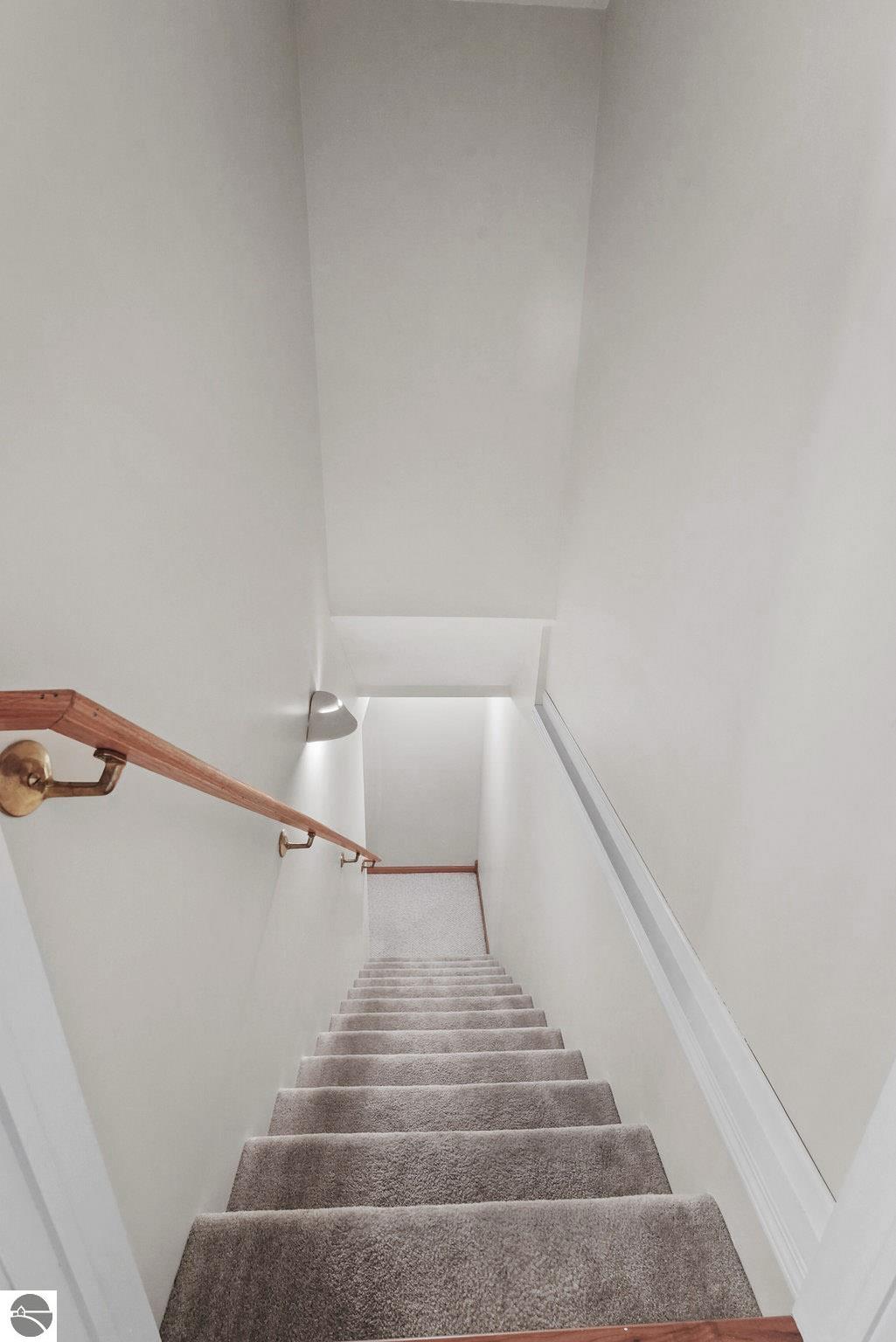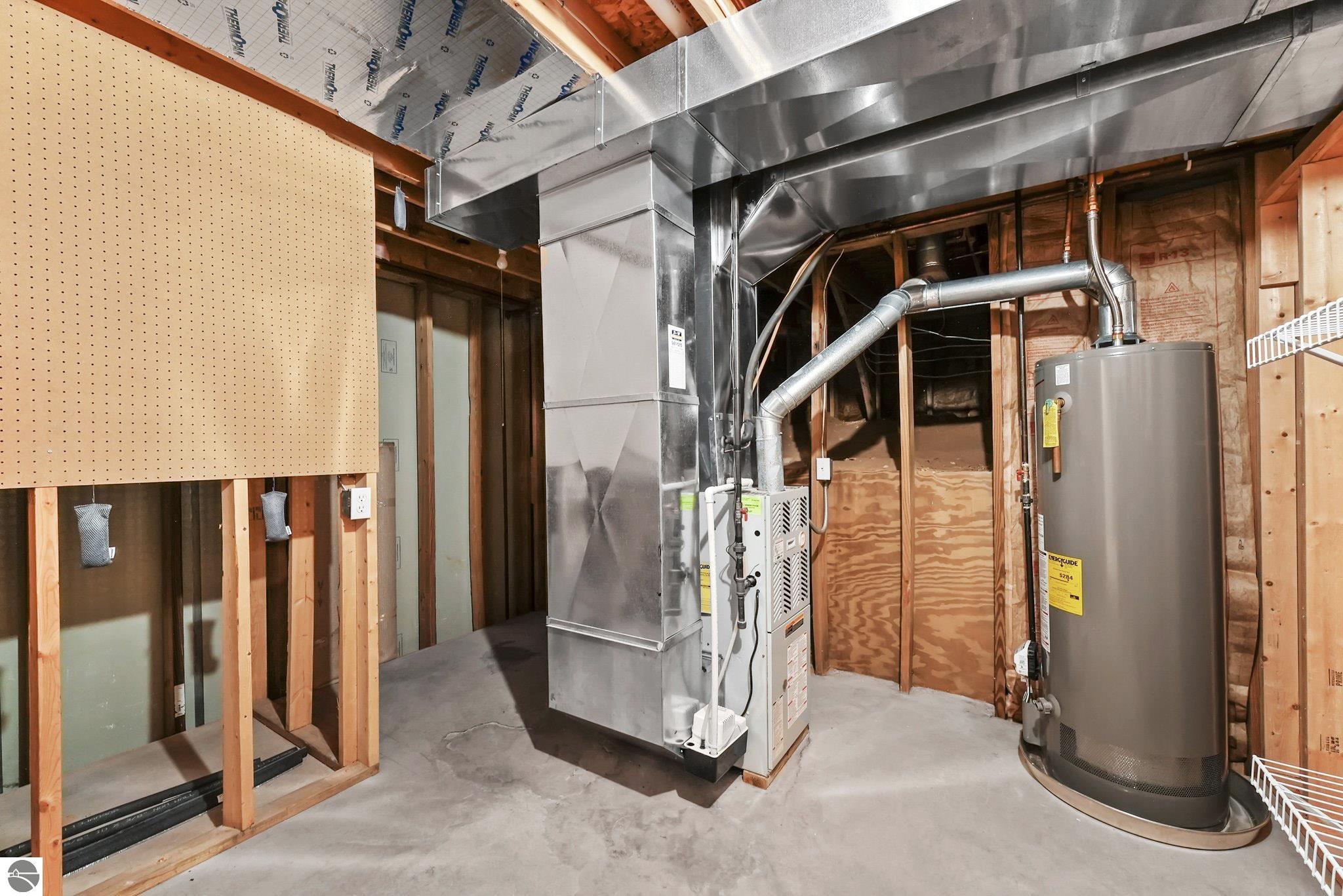 Move in ready! Take advantage of carefree main floor living, & great location to everything situated in Emerald Bluffs condo development. Enjoy just the right amount of space with an open & bright floor plan, lovely primary bedroom with private bath. Cathedral ceilings, cozy living room, wonderful kitchen design with new GE Stainless Appliances in 2025. open dining area and laundry rm. located off garage entrance. Full finished lower level with natural gas fireplace. Central air, attached 1+ car garage & landscaped yard with irrigation & covered front entrance. There is a private gate for owners to nearby shopping & restaurants, plus a great location in T.C.!