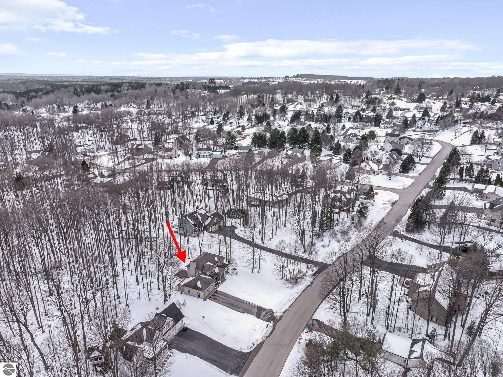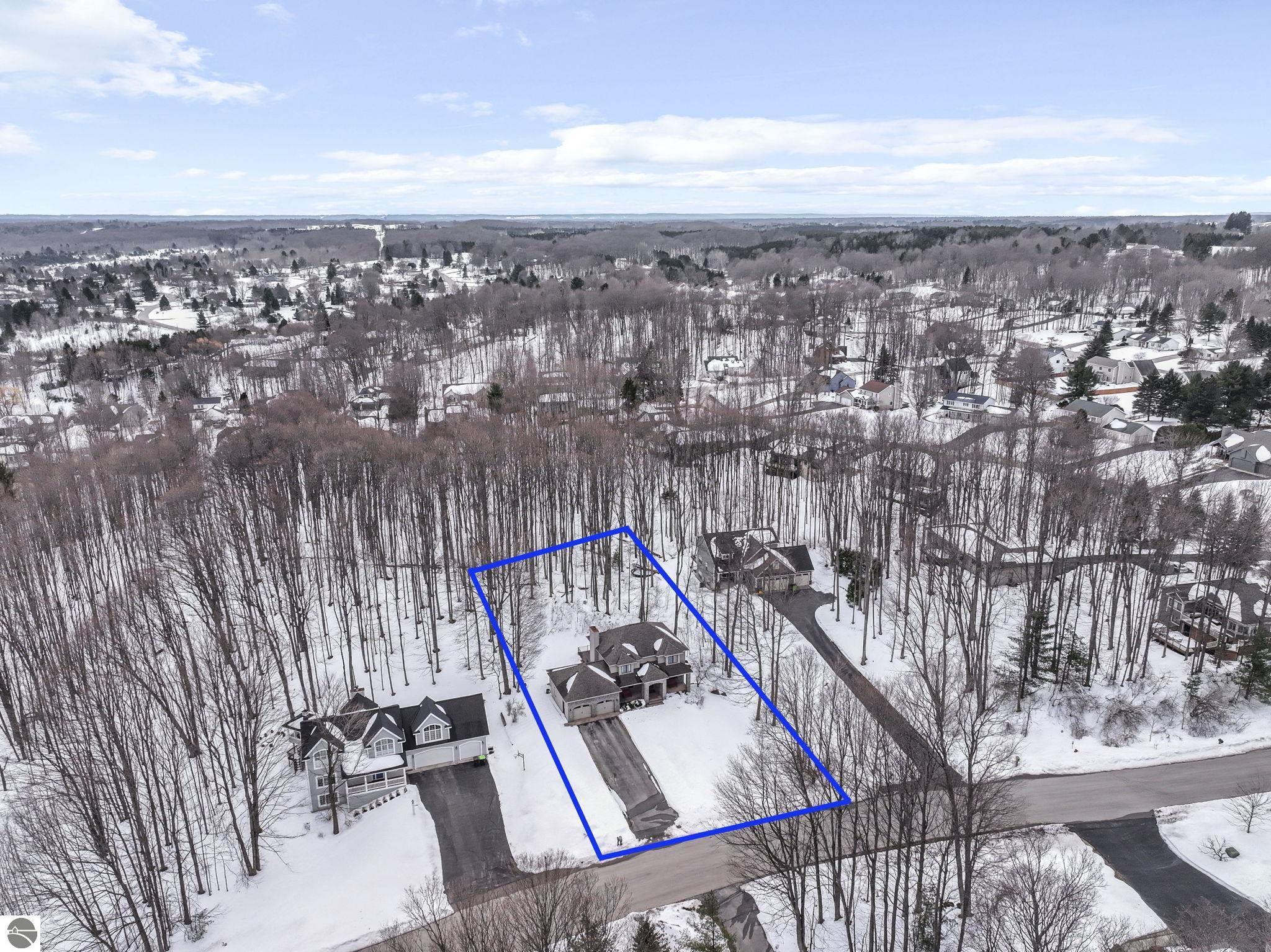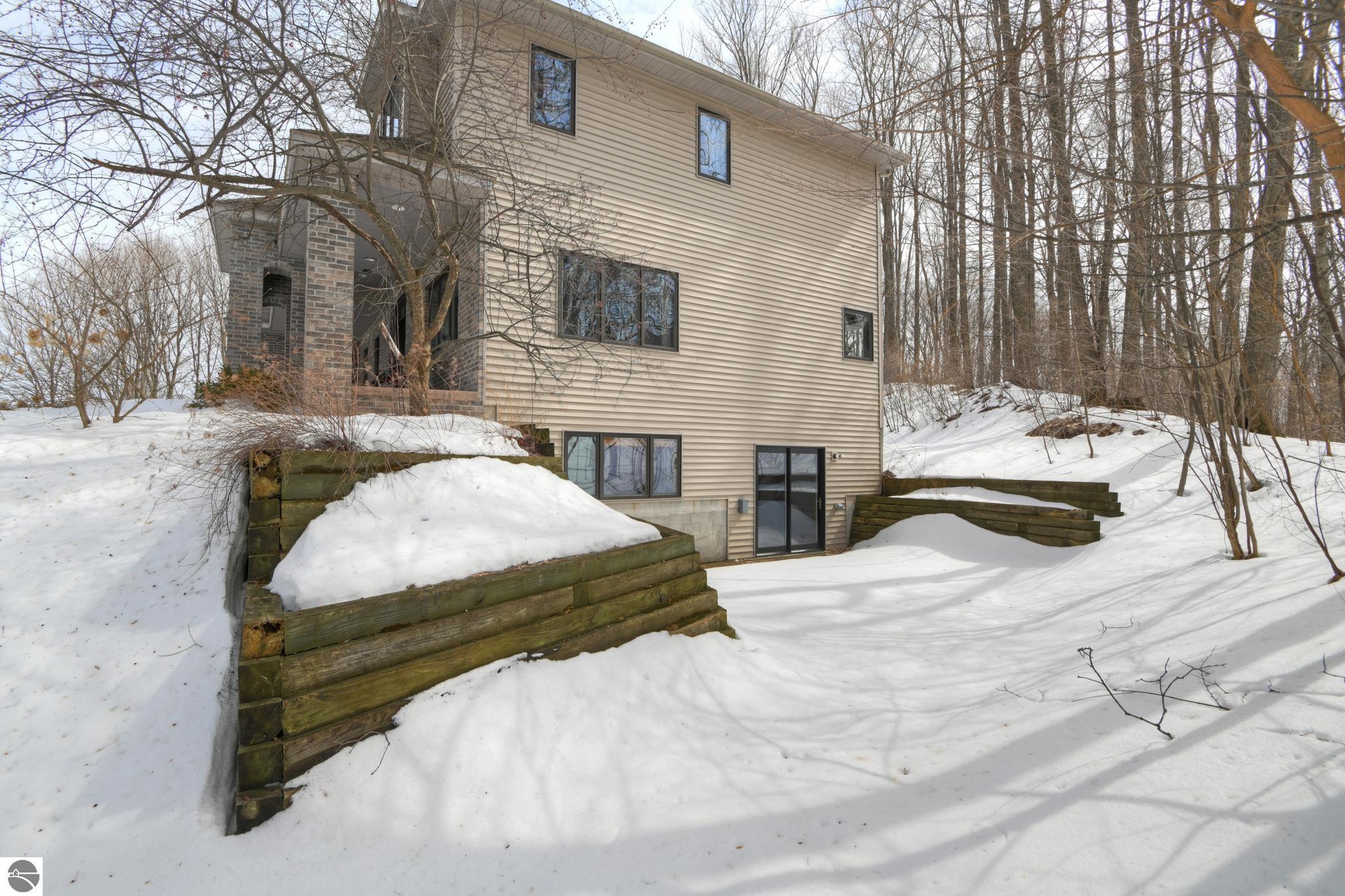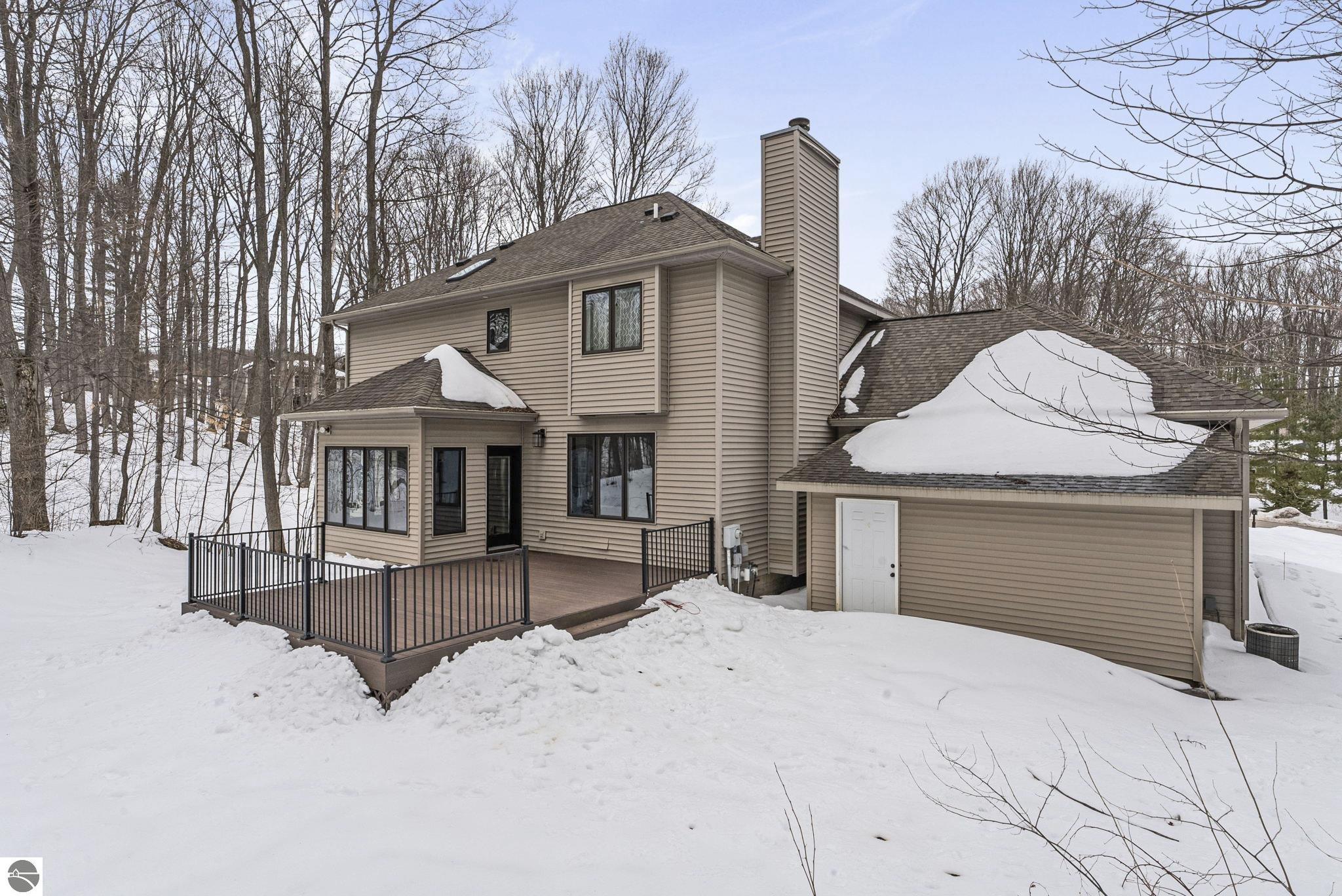 This bright, spacious two-story turnkey home with a walkout lower level and private backyard in desirable Silver Lake Farms. The spacious kitchen features granite countertops, a peninsula island, and abundant cabinetry, flowing into a sun-filled dining area with access to the rear deck, perfect for entertaining. The main floor includes a flexible den/office, convenient laundry, and a half bath. The primary suite offers a walk-in closet and en-suite bath with tiled walk-in shower. The finished walk-out lower level adds valuable living space with a large family room, wet bar, 4th non-conforming bedroom, and additional storage, ideal for guests or multi-generational living. Enjoy high ceilings, a cozy gas fireplace, and a 2-car attached garage with extra storage. Set on a private, wooded, spacious lot. This home is just minutes from downtown Traverse City, Munson, and the TART trail offering the best of Northern Michigan living.