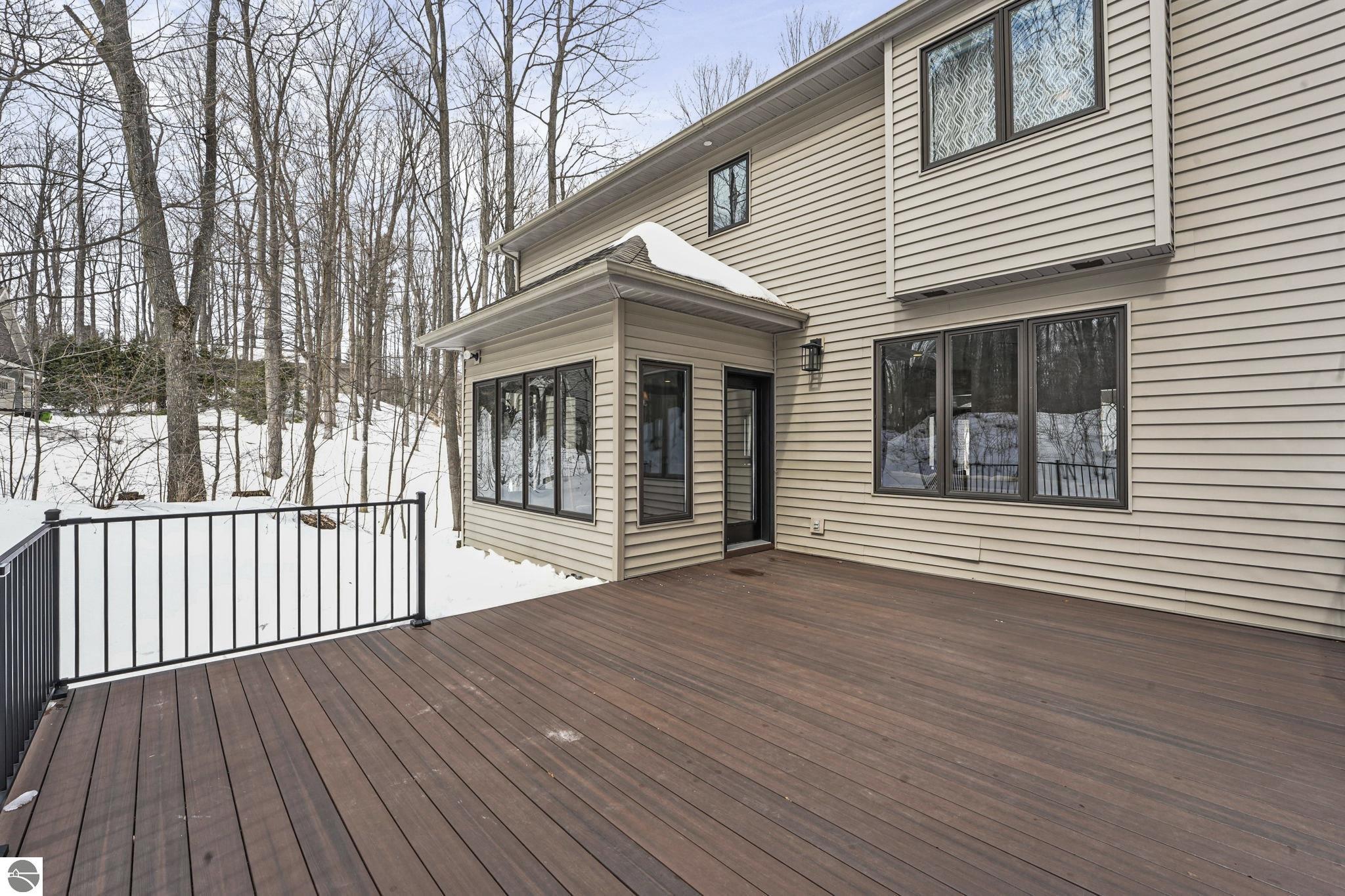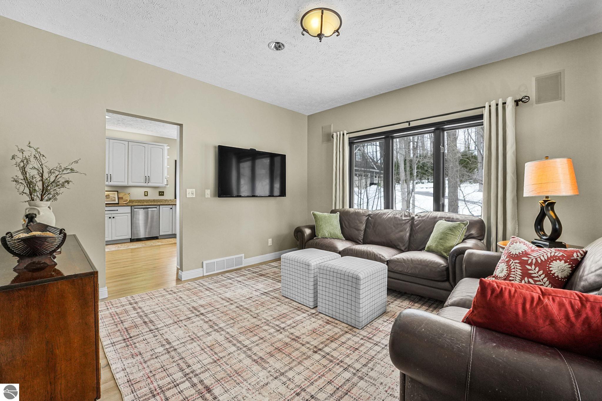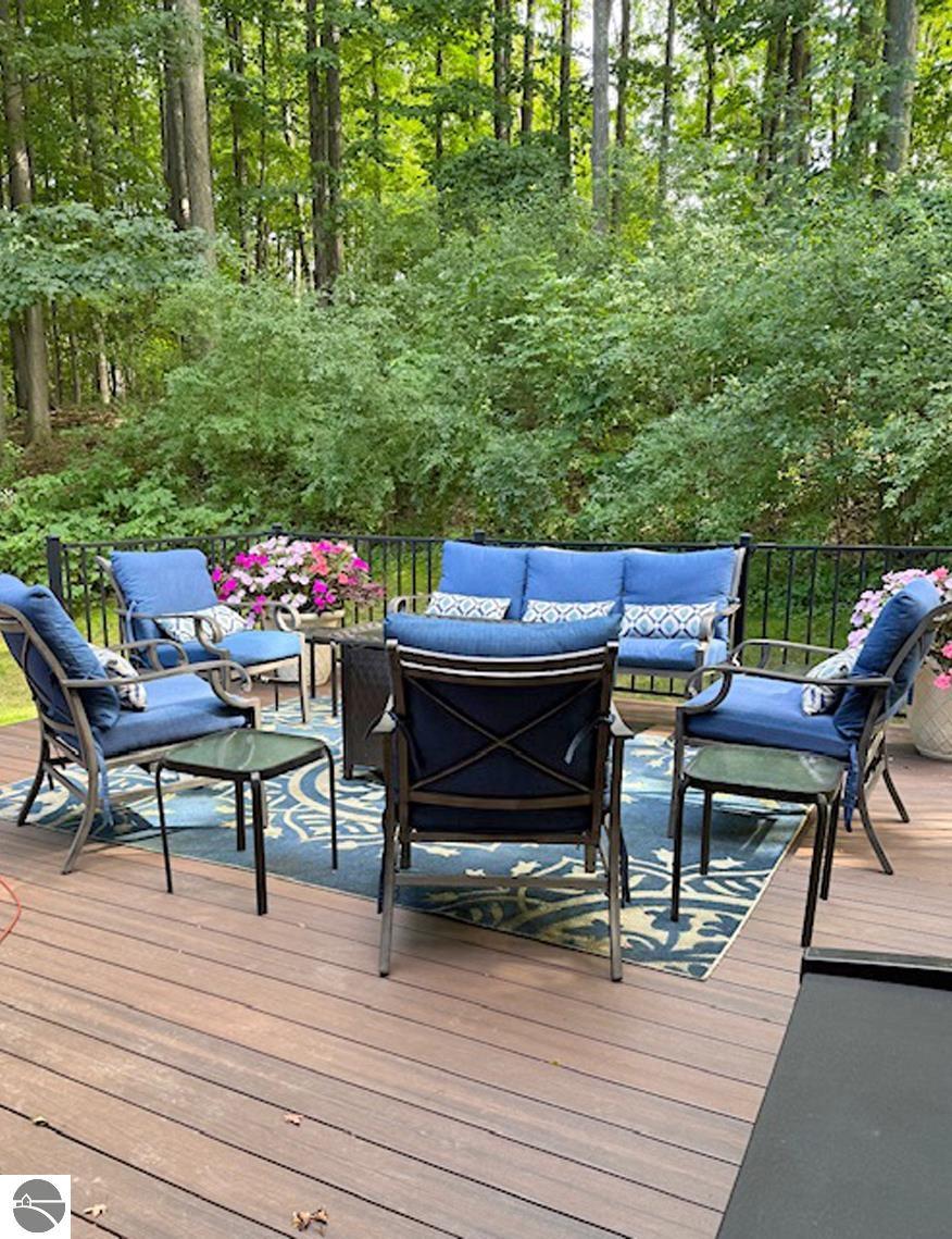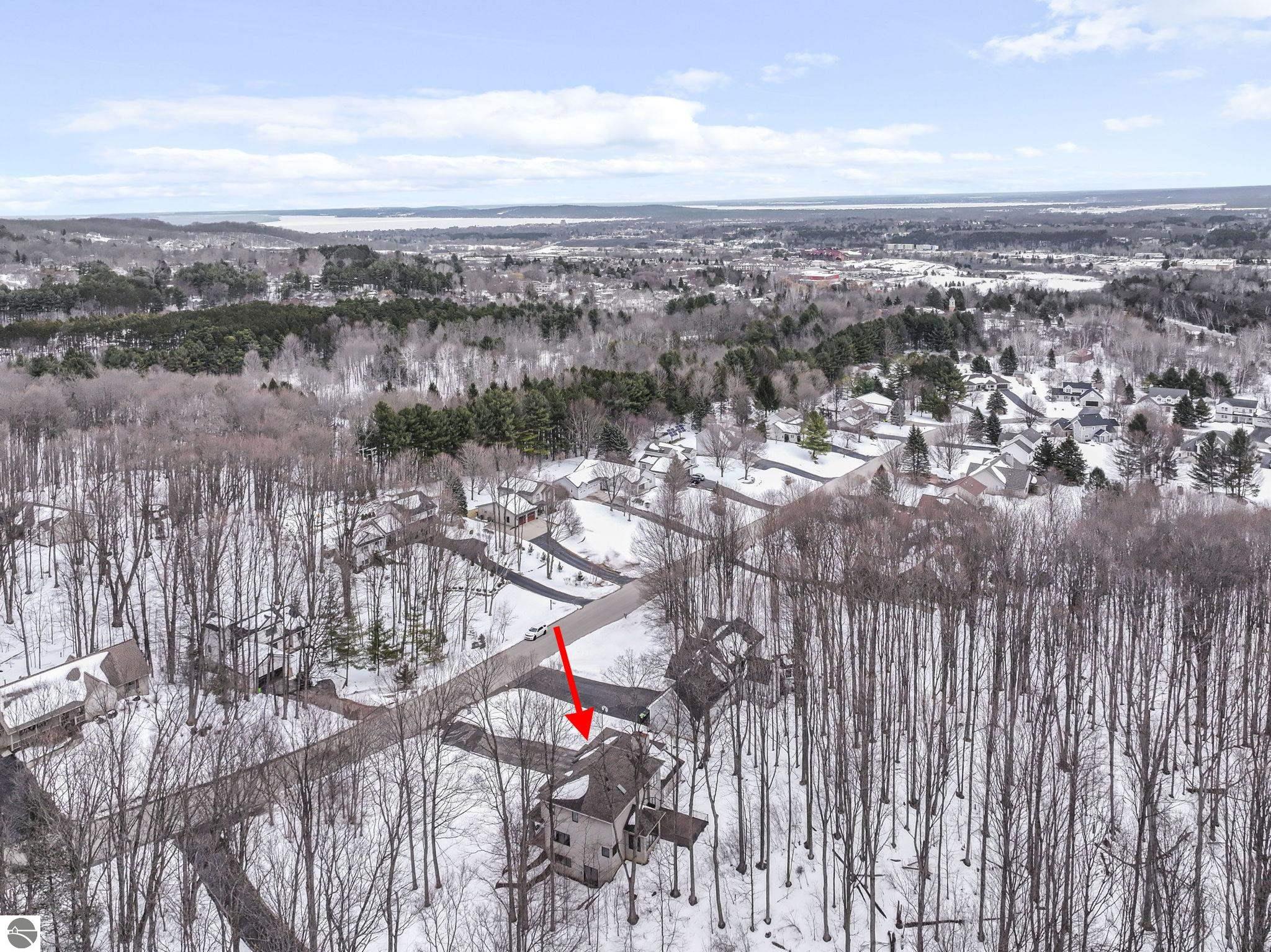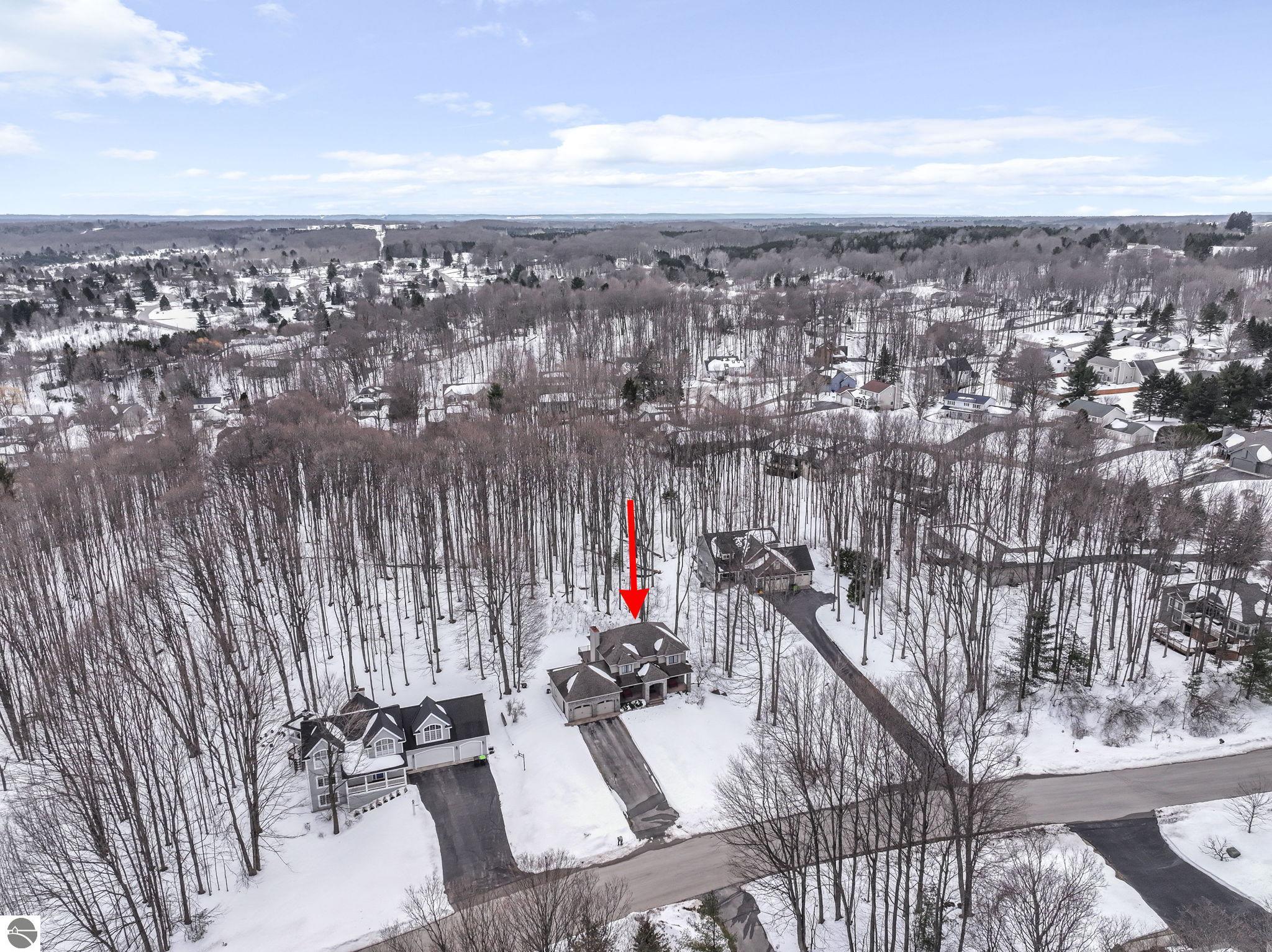 This bright, spacious two-story turnkey home with a walkout lower level and private backyard in desirable Silver Lake Farms. The spacious kitchen features granite countertops, a peninsula island, and abundant cabinetry, flowing into a sun-filled dining area with access to the rear deck, perfect for entertaining. The main floor includes a flexible den/office, convenient laundry, and a half bath. The primary suite offers a walk-in closet and en-suite bath with tiled walk-in shower. The finished walk-out lower level adds valuable living space with a large family room, wet bar, 4th non-conforming bedroom, and additional storage, ideal for guests or multi-generational living. Enjoy high ceilings, a cozy gas fireplace, and a 2-car attached garage with extra storage. Set on a private, wooded, spacious lot. This home is just minutes from downtown Traverse City, Munson, and the TART trail offering the best of Northern Michigan living.