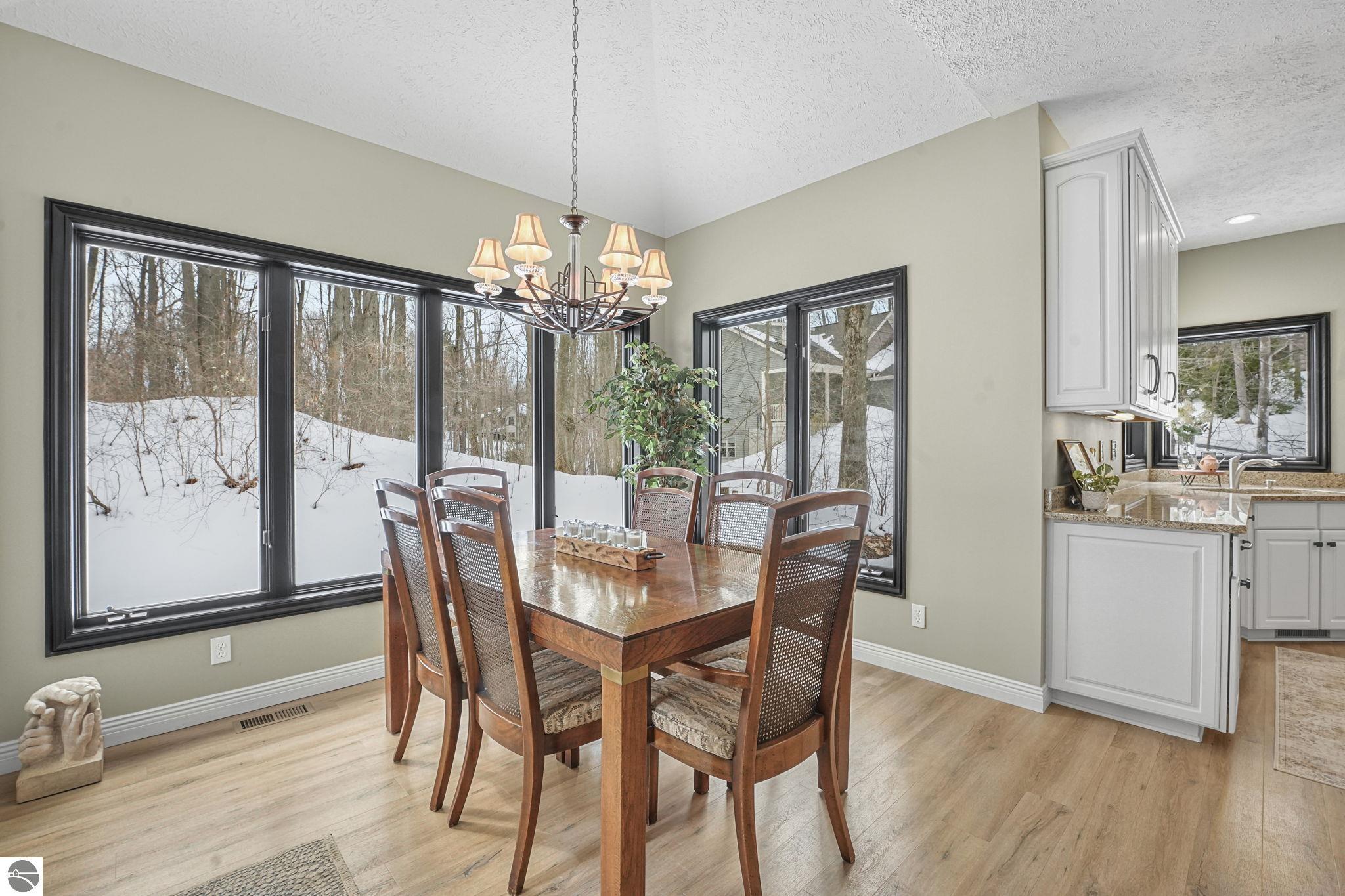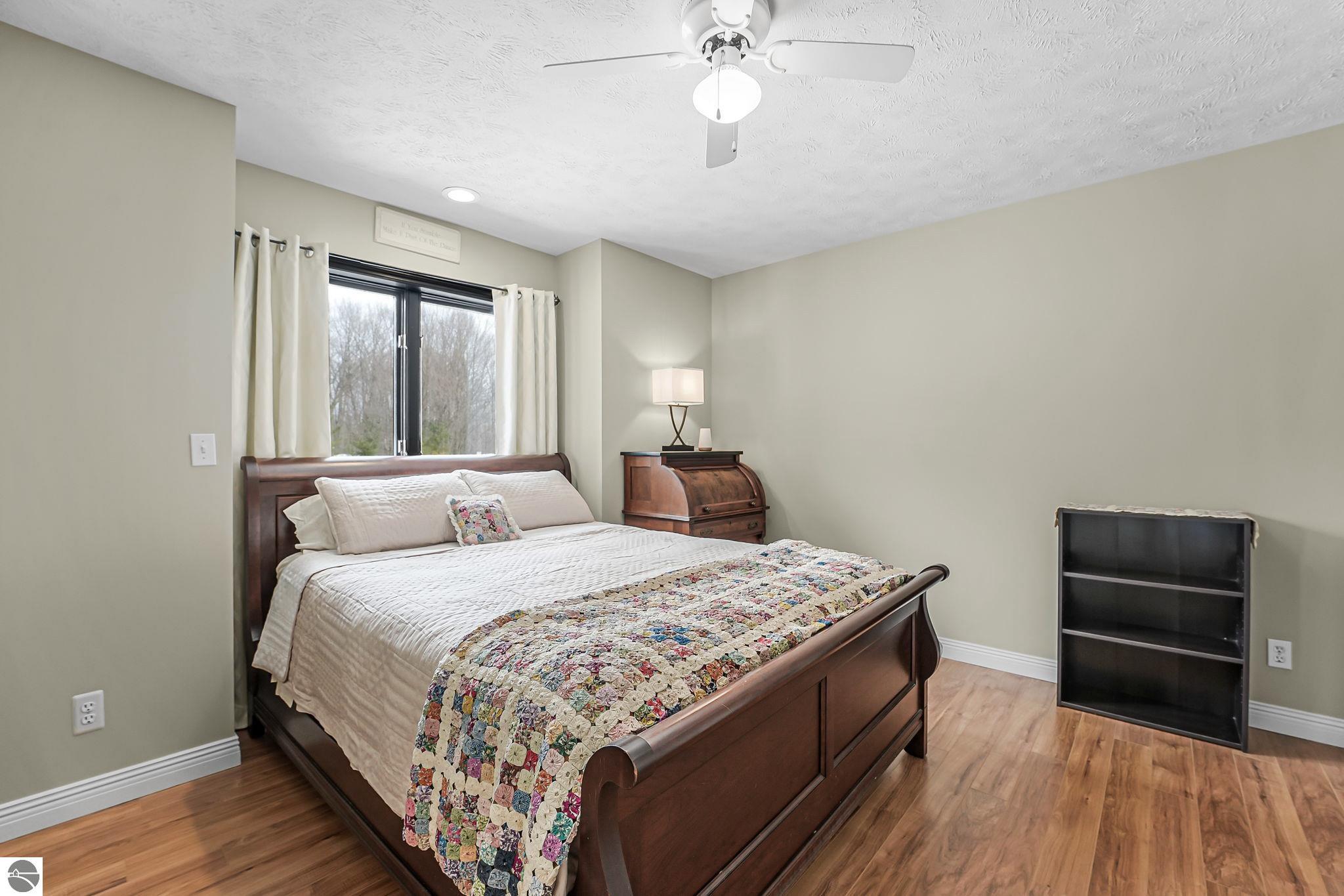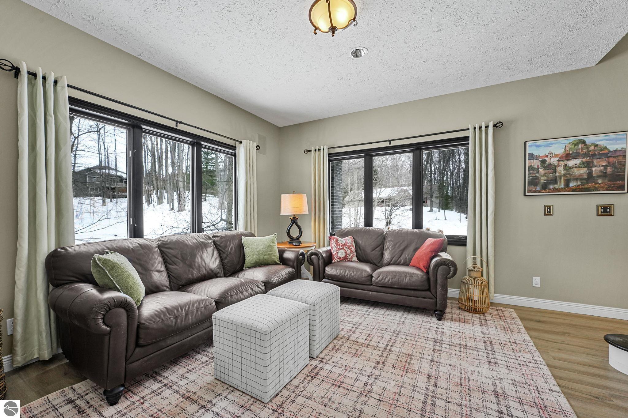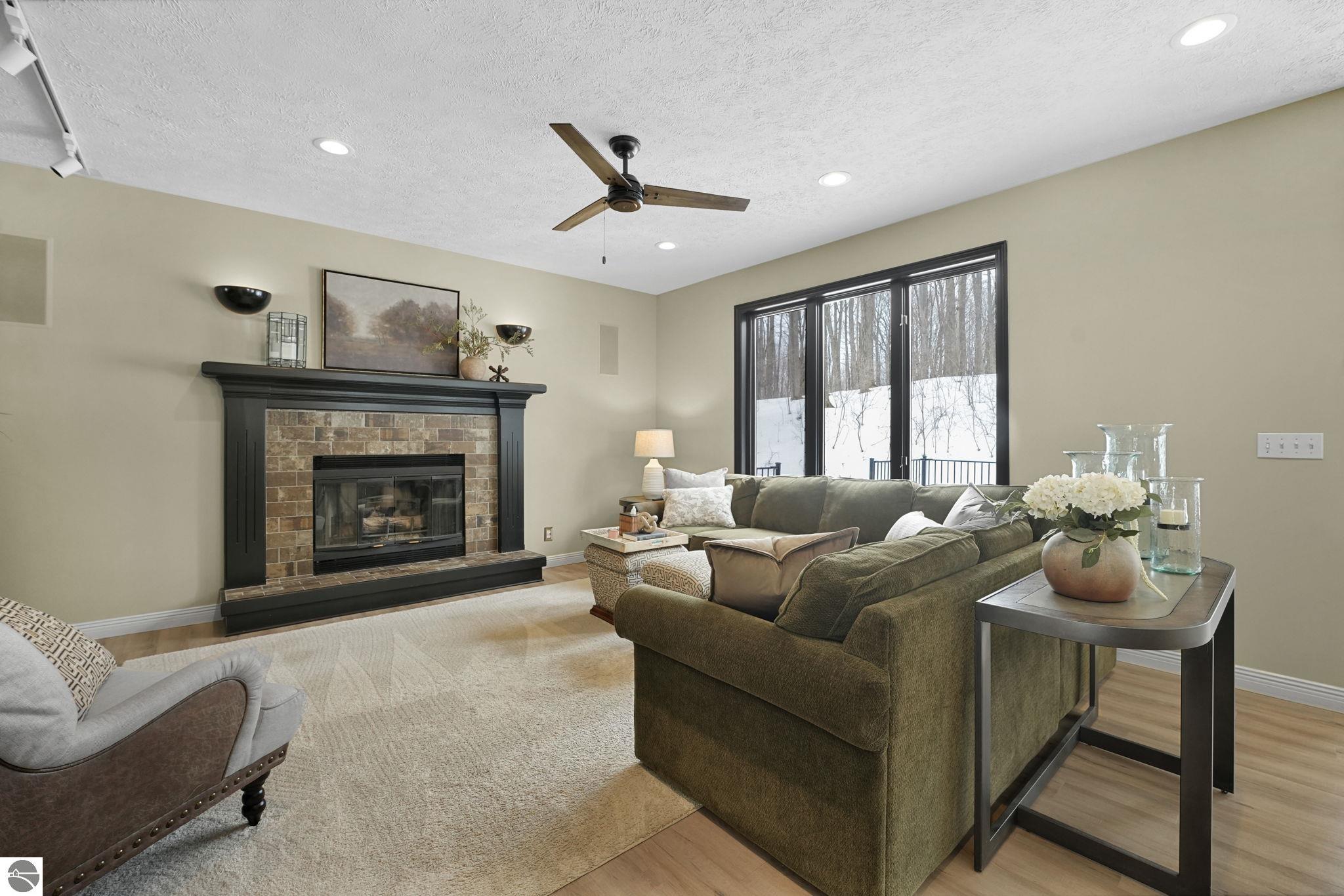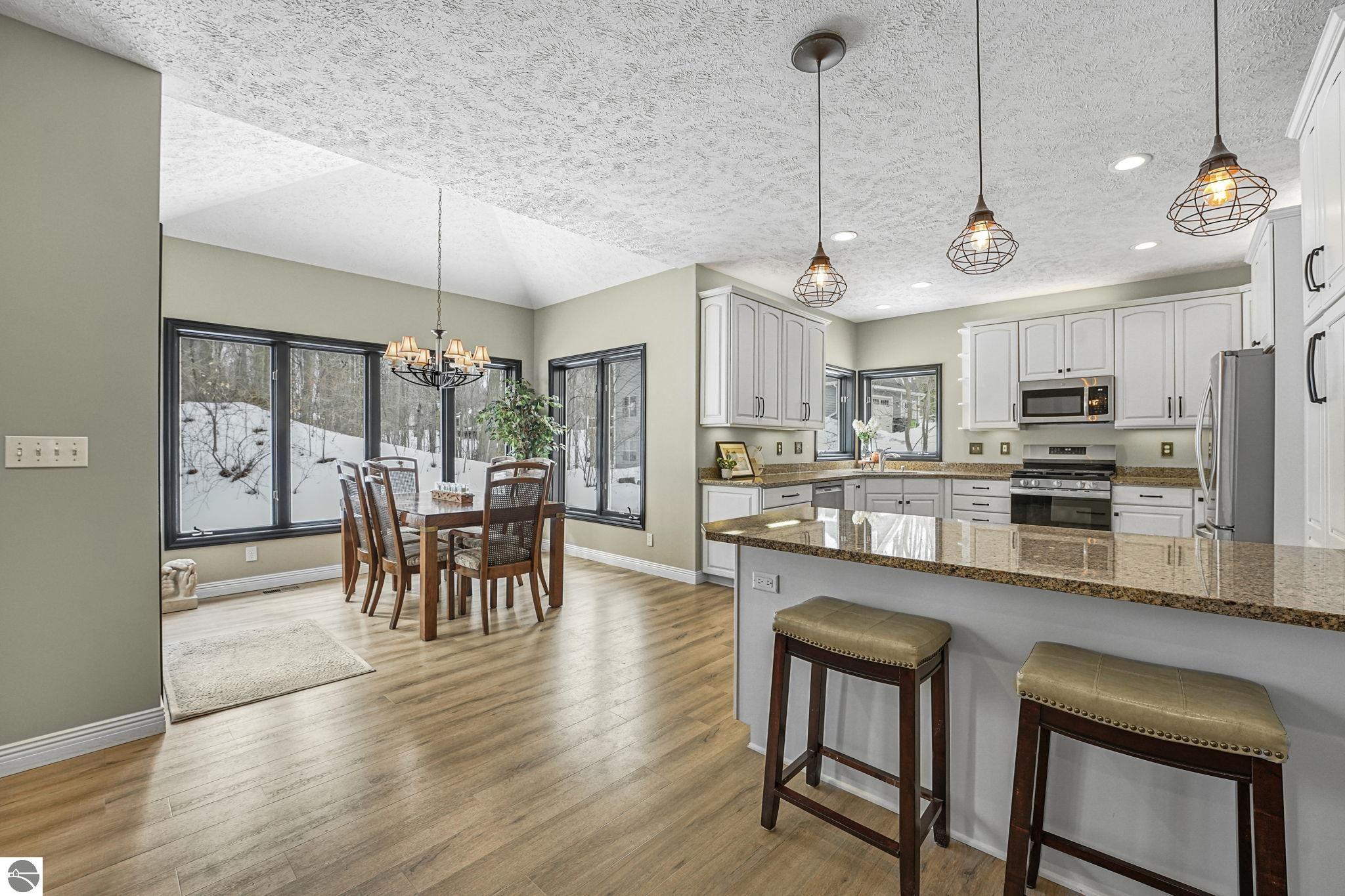 This bright, spacious two-story turnkey home with a walkout lower level and private backyard in desirable Silver Lake Farms. The spacious kitchen features granite countertops, a peninsula island, and abundant cabinetry, flowing into a sun-filled dining area with access to the rear deck, perfect for entertaining. The main floor includes a flexible den/office, convenient laundry, and a half bath. The primary suite offers a walk-in closet and en-suite bath with tiled walk-in shower. The finished walk-out lower level adds valuable living space with a large family room, wet bar, 4th non-conforming bedroom, and additional storage, ideal for guests or multi-generational living. Enjoy high ceilings, a cozy gas fireplace, and a 2-car attached garage with extra storage. Set on a private, wooded, spacious lot. This home is just minutes from downtown Traverse City, Munson, and the TART trail offering the best of Northern Michigan living.