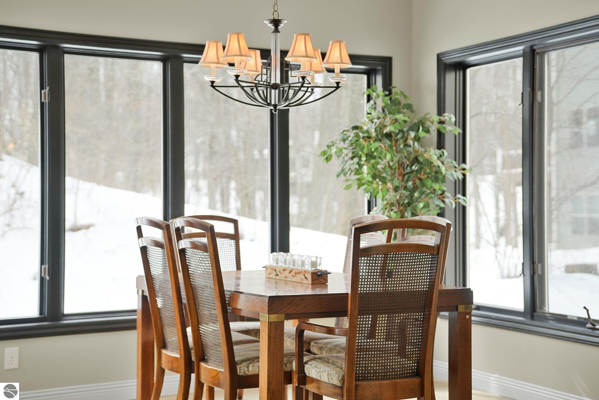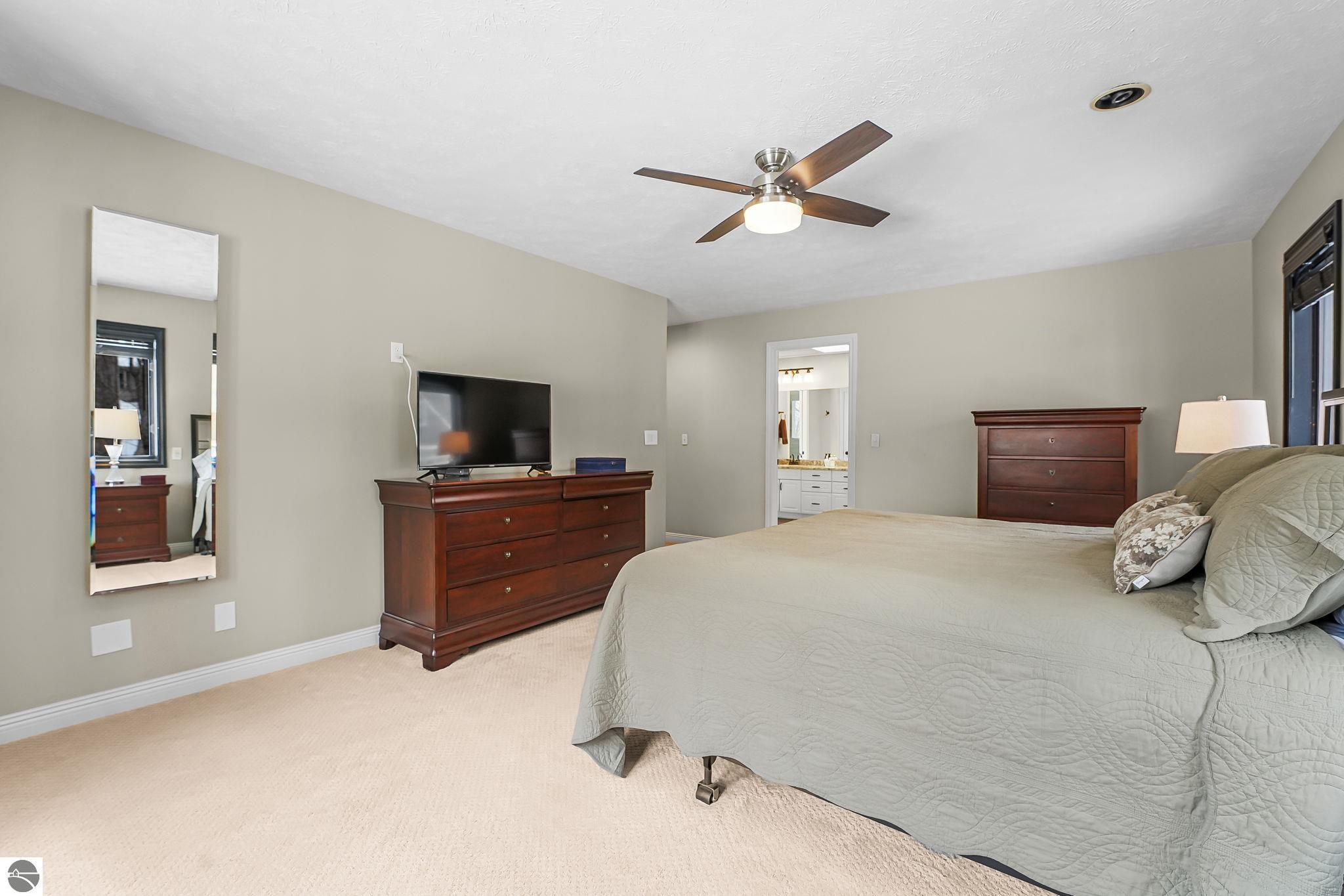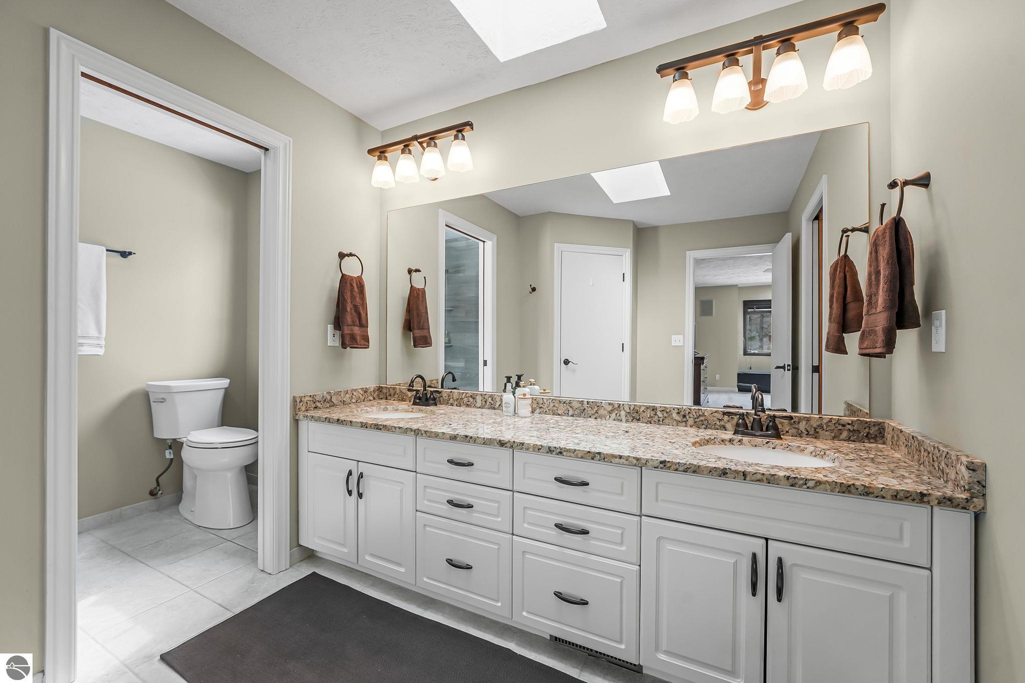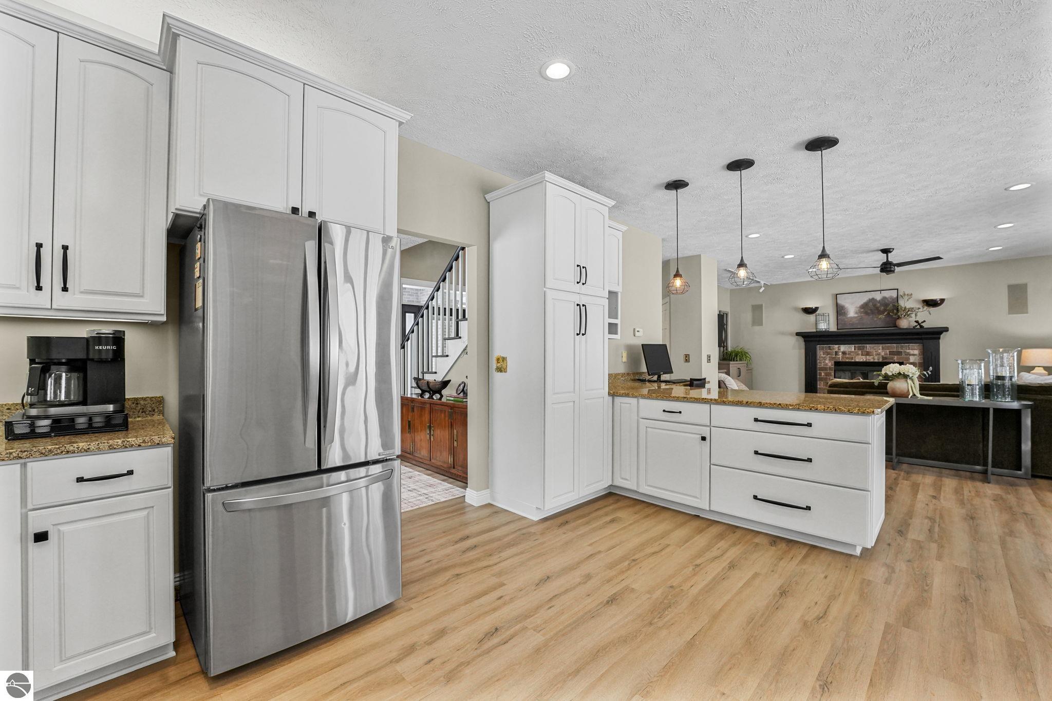 This bright, spacious two-story turnkey home with a walkout lower level and private backyard in desirable Silver Lake Farms. The spacious kitchen features granite countertops, a peninsula island, and abundant cabinetry, flowing into a sun-filled dining area with access to the rear deck, perfect for entertaining. The main floor includes a flexible den/office, convenient laundry, and a half bath. The primary suite offers a walk-in closet and en-suite bath with tiled walk-in shower. The finished walk-out lower level adds valuable living space with a large family room, wet bar, 4th non-conforming bedroom, and additional storage, ideal for guests or multi-generational living. Enjoy high ceilings, a cozy gas fireplace, and a 2-car attached garage with extra storage. Set on a private, wooded, spacious lot. This home is just minutes from downtown Traverse City, Munson, and the TART trail offering the best of Northern Michigan living.