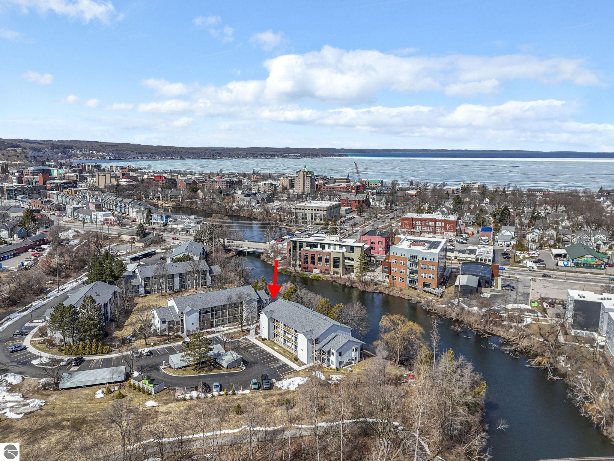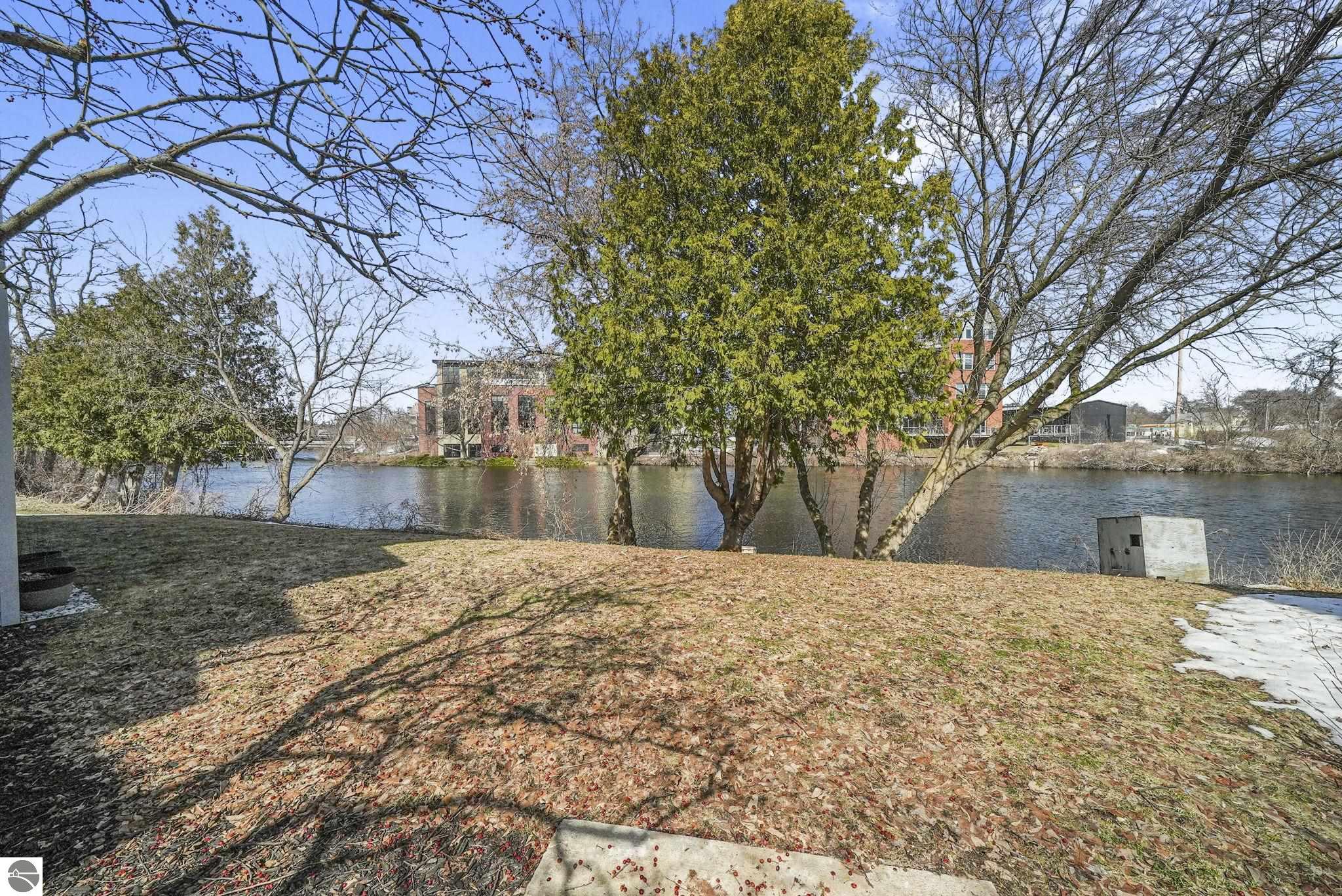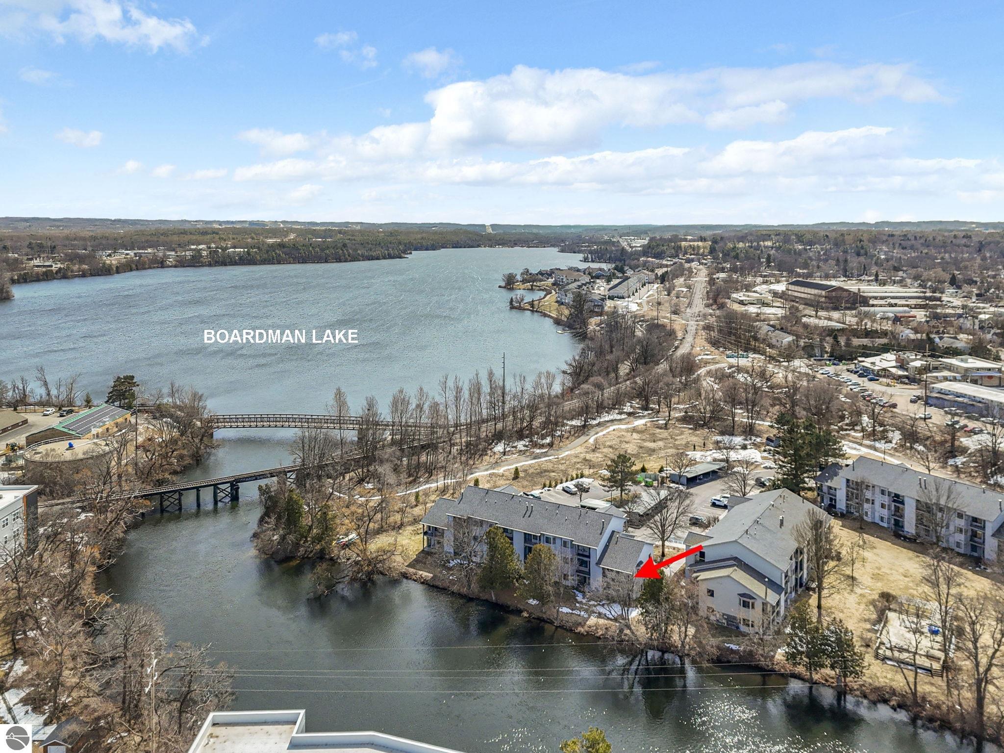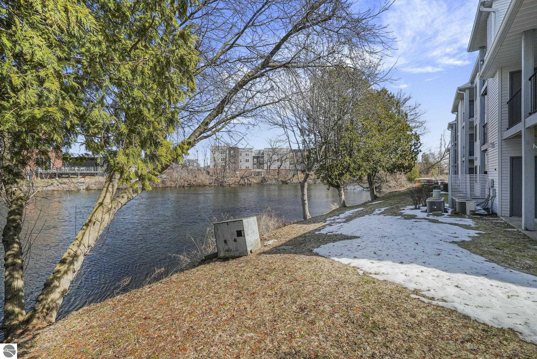Fully renovated 1 bedroom, 1 bath, condominium in Traverse City’s NoBo district. Perfectly situated with over 600 feet of shared frontage and water access. Place your kayak at the water's edge and choose your adventure. Enjoy tranquil water views from a spacious living room, master with walk-in closet, and private balcony. Kitchen includes sleek, quartz countertops with ample counter seating. Front room offers a flexible space for dining, home office, or additional sleeping area, if needed. Nestled next to the TART trail and the Boardman Lake Loop, outdoor enthusiasts will appreciate the immediate access to biking, walking, and running along the meandering paths. Take a quick walk up a winding trail to a full outdoor fitness court and market. This unit is turn-key and includes a designated parking spot.