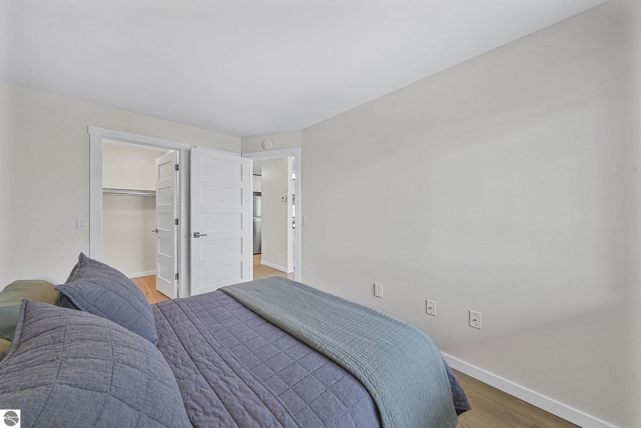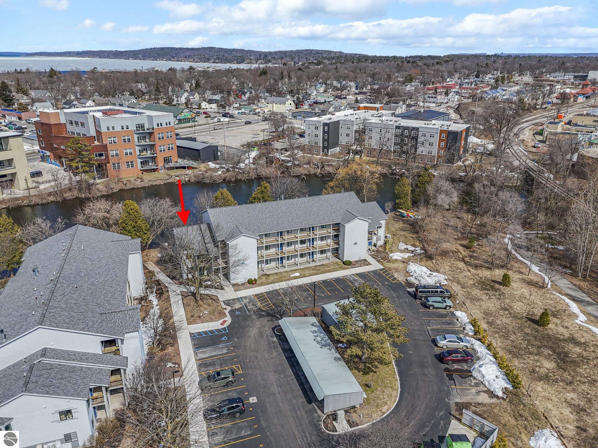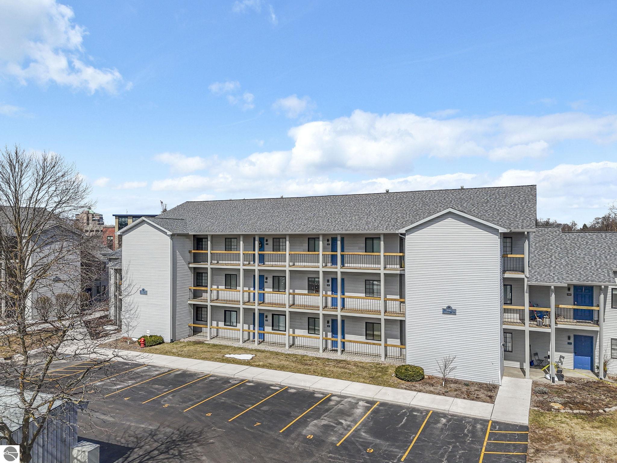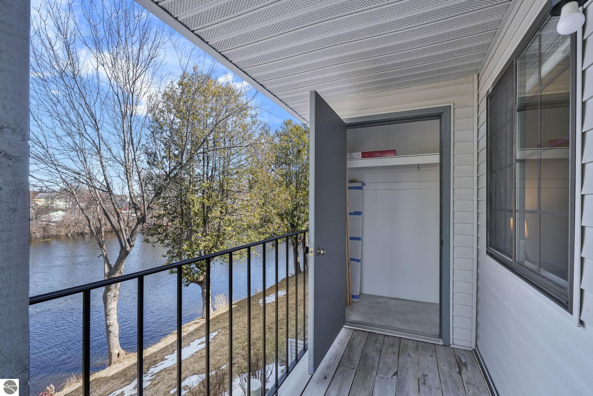 Fully renovated 1 bedroom, 1 bath, condominium in Traverse City’s NoBo district. Perfectly situated with over 600 feet of shared frontage and water access. Place your kayak at the water's edge and choose your adventure. Enjoy tranquil water views from a spacious living room, master with walk-in closet, and private balcony. Kitchen includes sleek, quartz countertops with ample counter seating. Front room offers a flexible space for dining, home office, or additional sleeping area, if needed. Nestled next to the TART trail and the Boardman Lake Loop, outdoor enthusiasts will appreciate the immediate access to biking, walking, and running along the meandering paths. Take a quick walk up a winding trail to a full outdoor fitness court and market. This unit is turn-key and includes a designated parking spot.