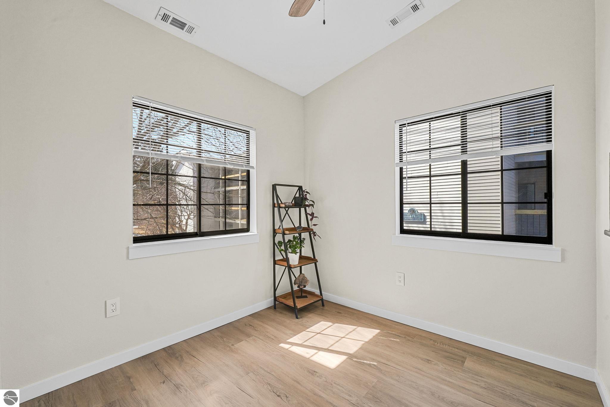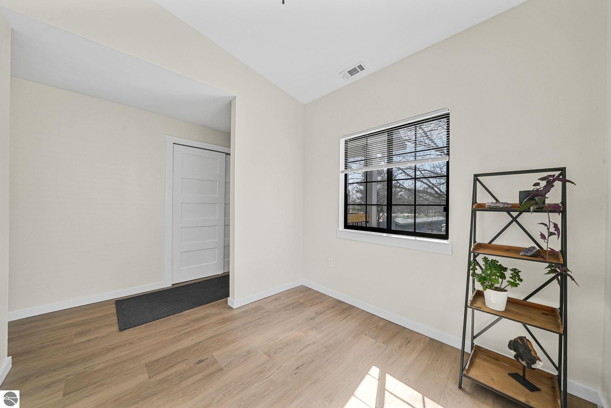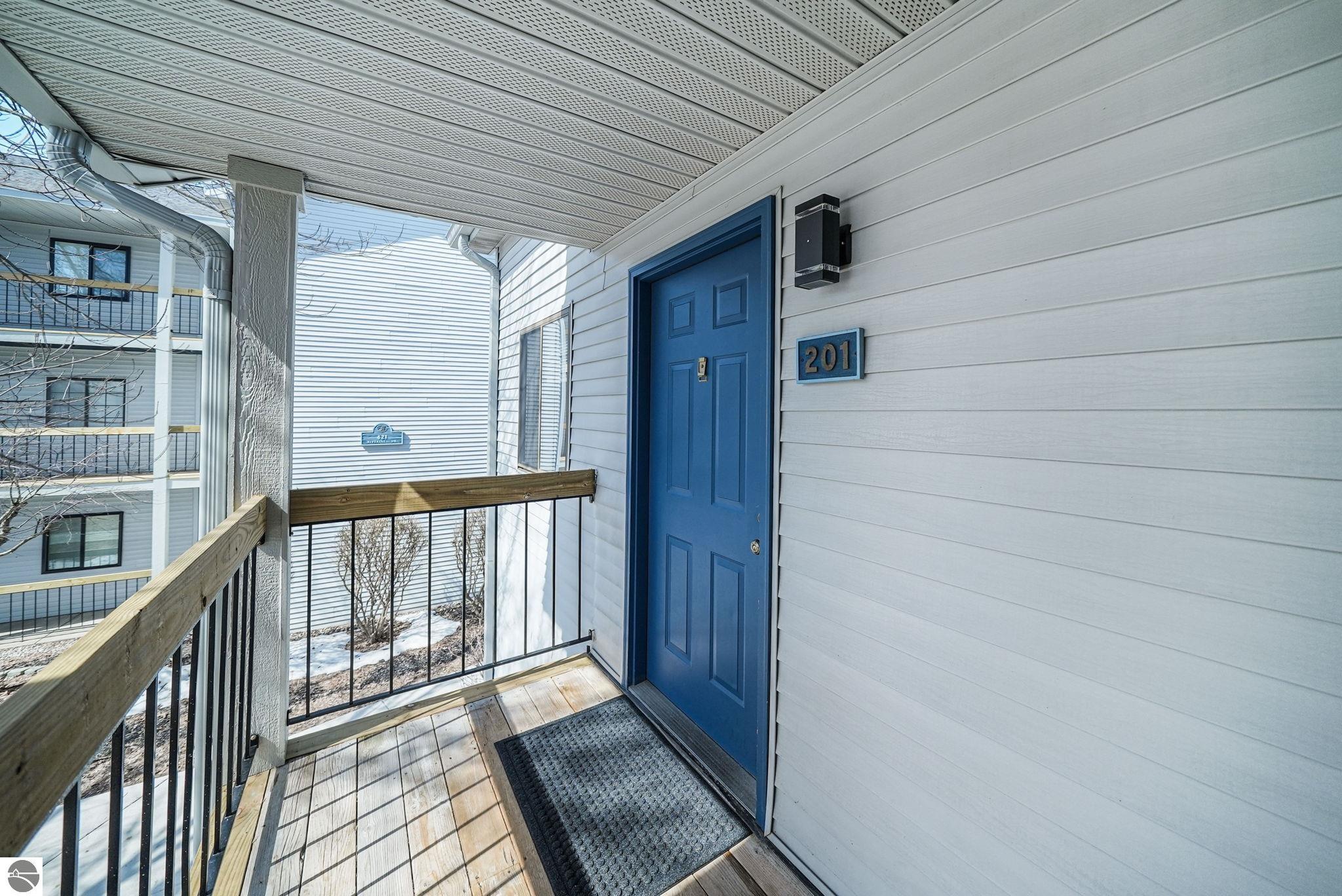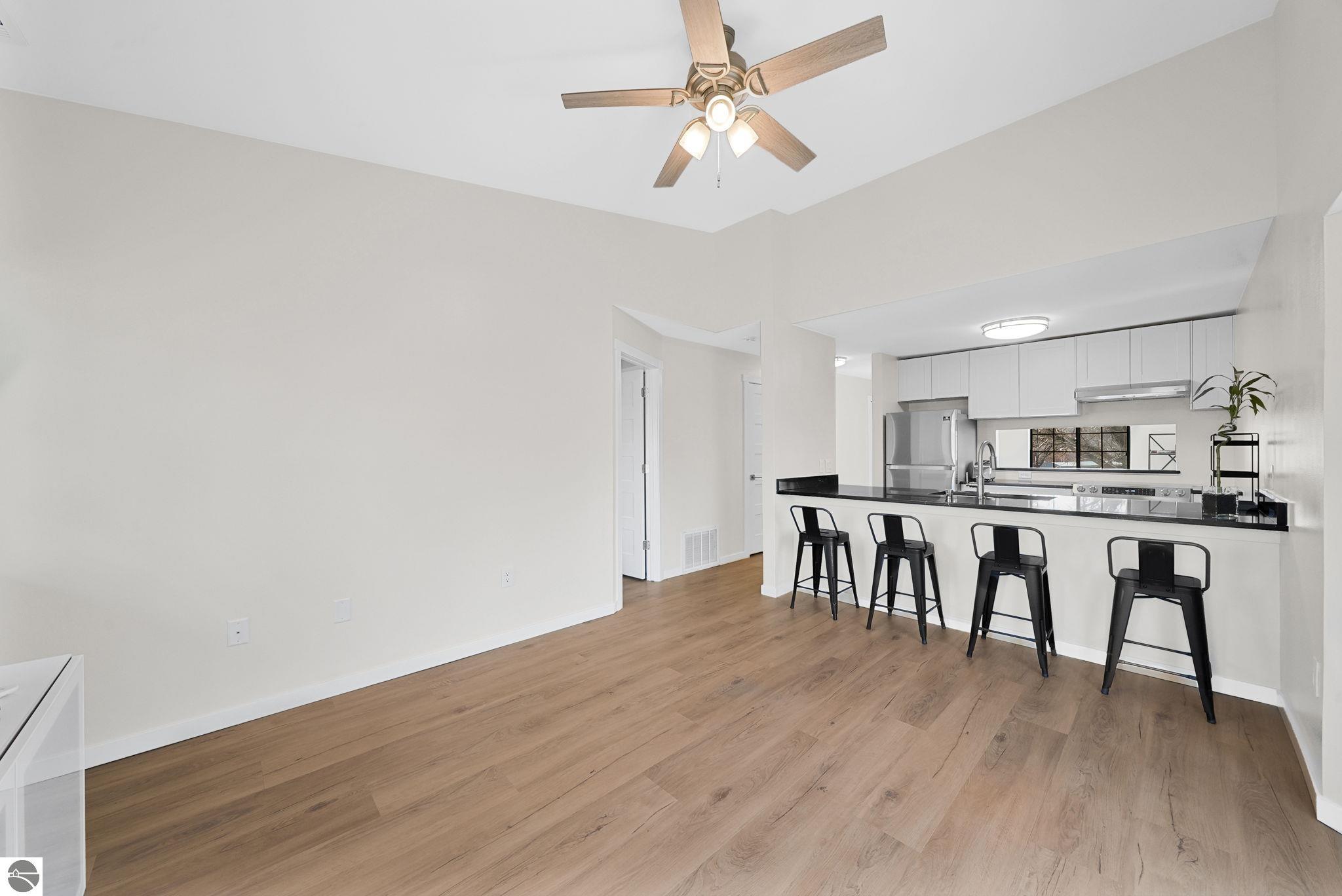 Fully renovated 1 bedroom, 1 bath, condominium in Traverse City’s NoBo district. Perfectly situated with over 600 feet of shared frontage and water access. Place your kayak at the water's edge and choose your adventure. Enjoy tranquil water views from a spacious living room, master with walk-in closet, and private balcony. Kitchen includes sleek, quartz countertops with ample counter seating. Front room offers a flexible space for dining, home office, or additional sleeping area, if needed. Nestled next to the TART trail and the Boardman Lake Loop, outdoor enthusiasts will appreciate the immediate access to biking, walking, and running along the meandering paths. Take a quick walk up a winding trail to a full outdoor fitness court and market. This unit is turn-key and includes a designated parking spot.