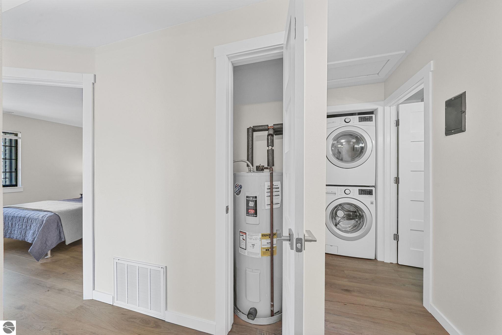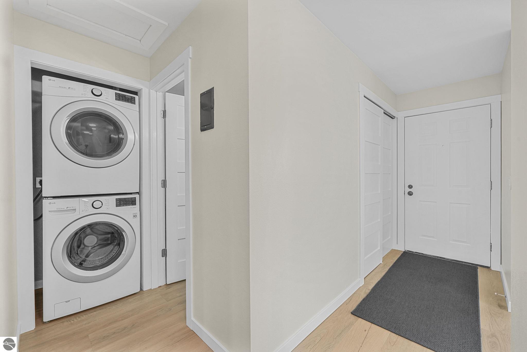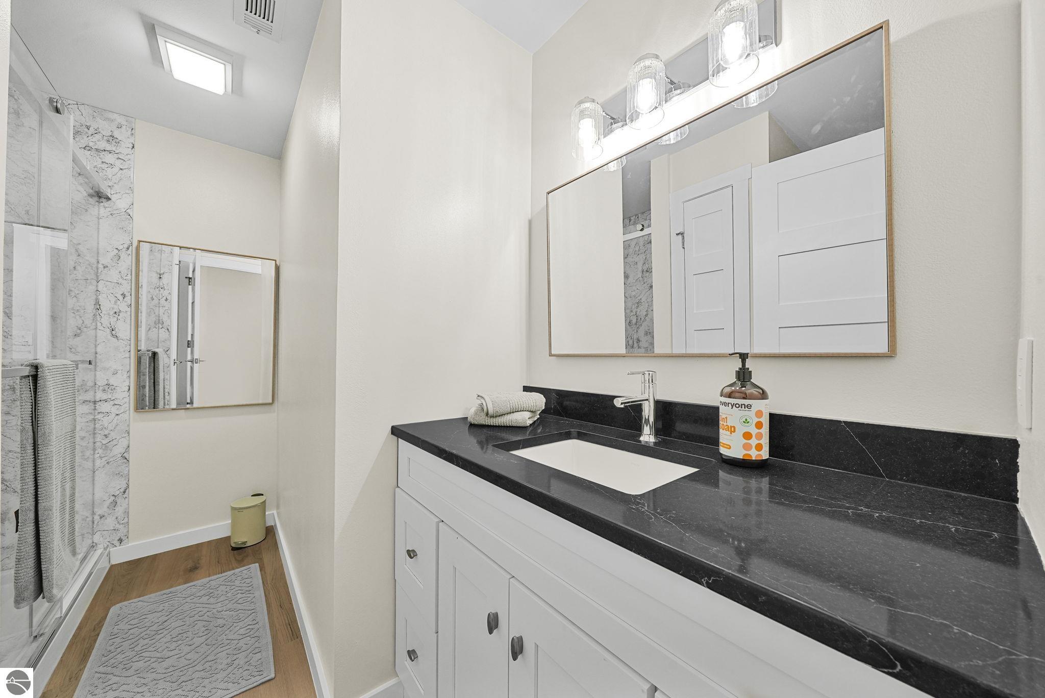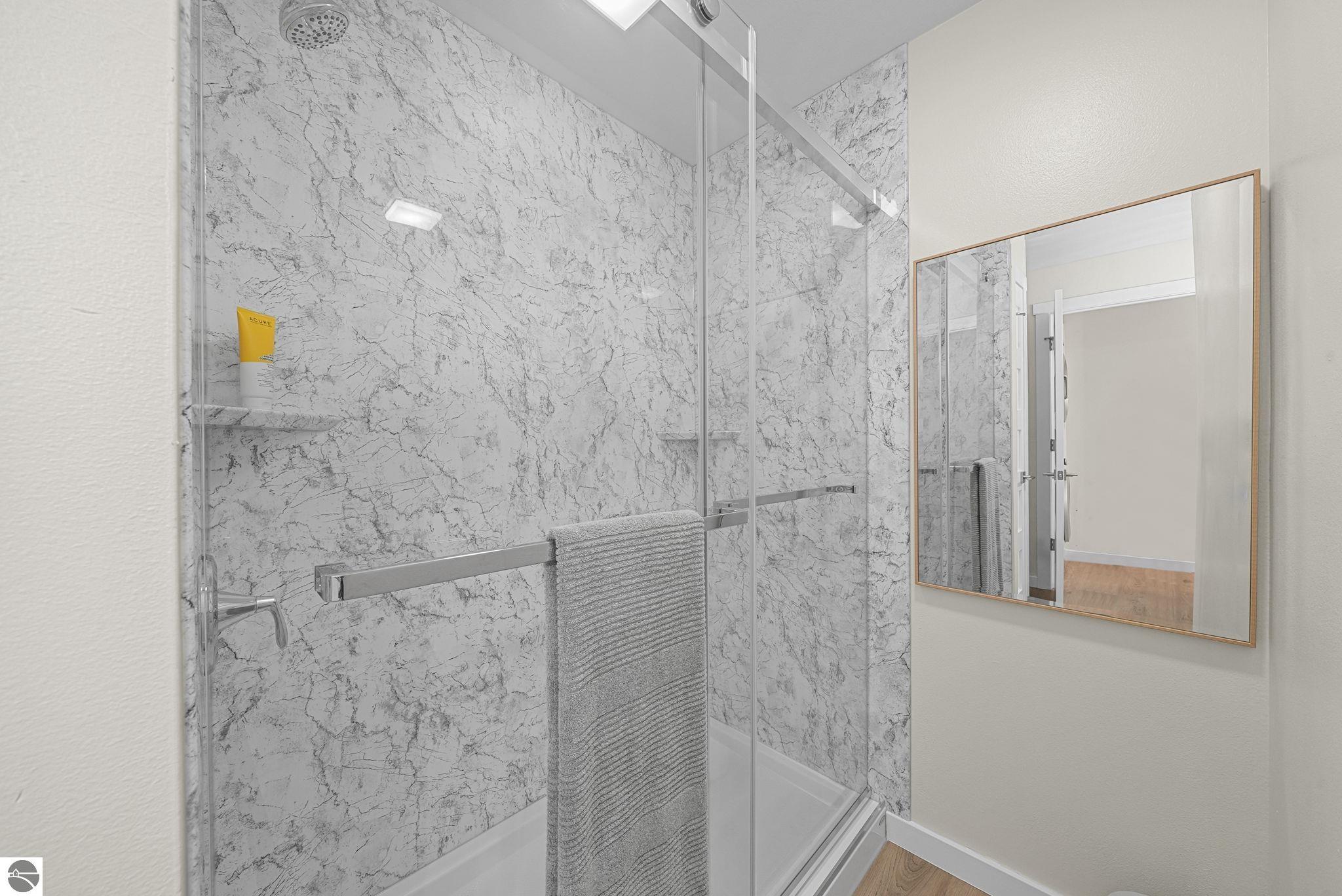 Fully renovated 1 bedroom, 1 bath, condominium in Traverse City’s NoBo district. Perfectly situated with over 600 feet of shared frontage and water access. Place your kayak at the water's edge and choose your adventure. Enjoy tranquil water views from a spacious living room, master with walk-in closet, and private balcony. Kitchen includes sleek, quartz countertops with ample counter seating. Front room offers a flexible space for dining, home office, or additional sleeping area, if needed. Nestled next to the TART trail and the Boardman Lake Loop, outdoor enthusiasts will appreciate the immediate access to biking, walking, and running along the meandering paths. Take a quick walk up a winding trail to a full outdoor fitness court and market. This unit is turn-key and includes a designated parking spot.