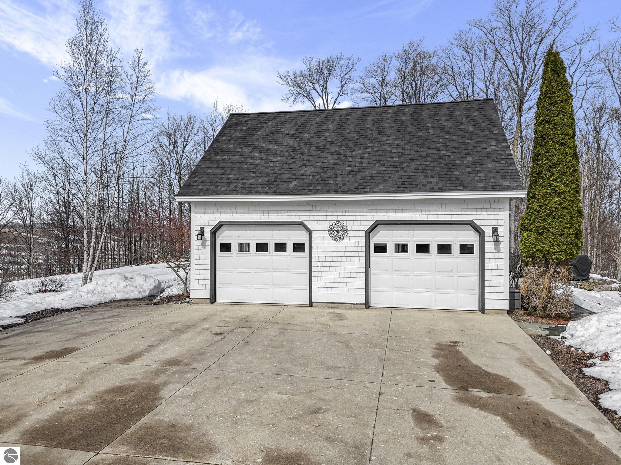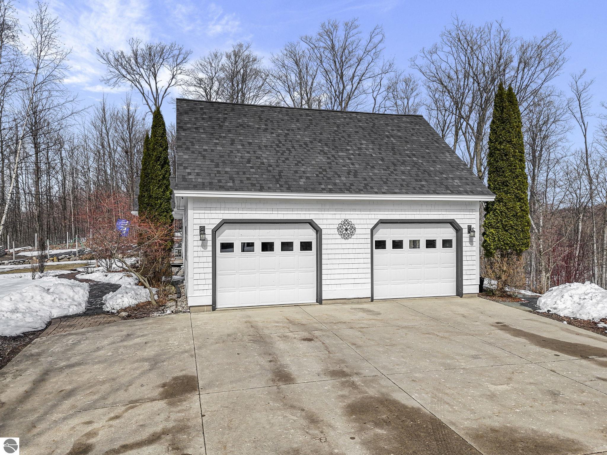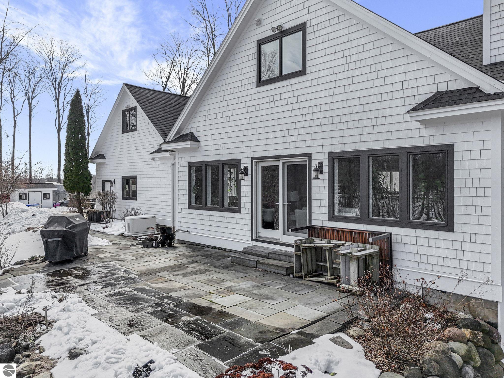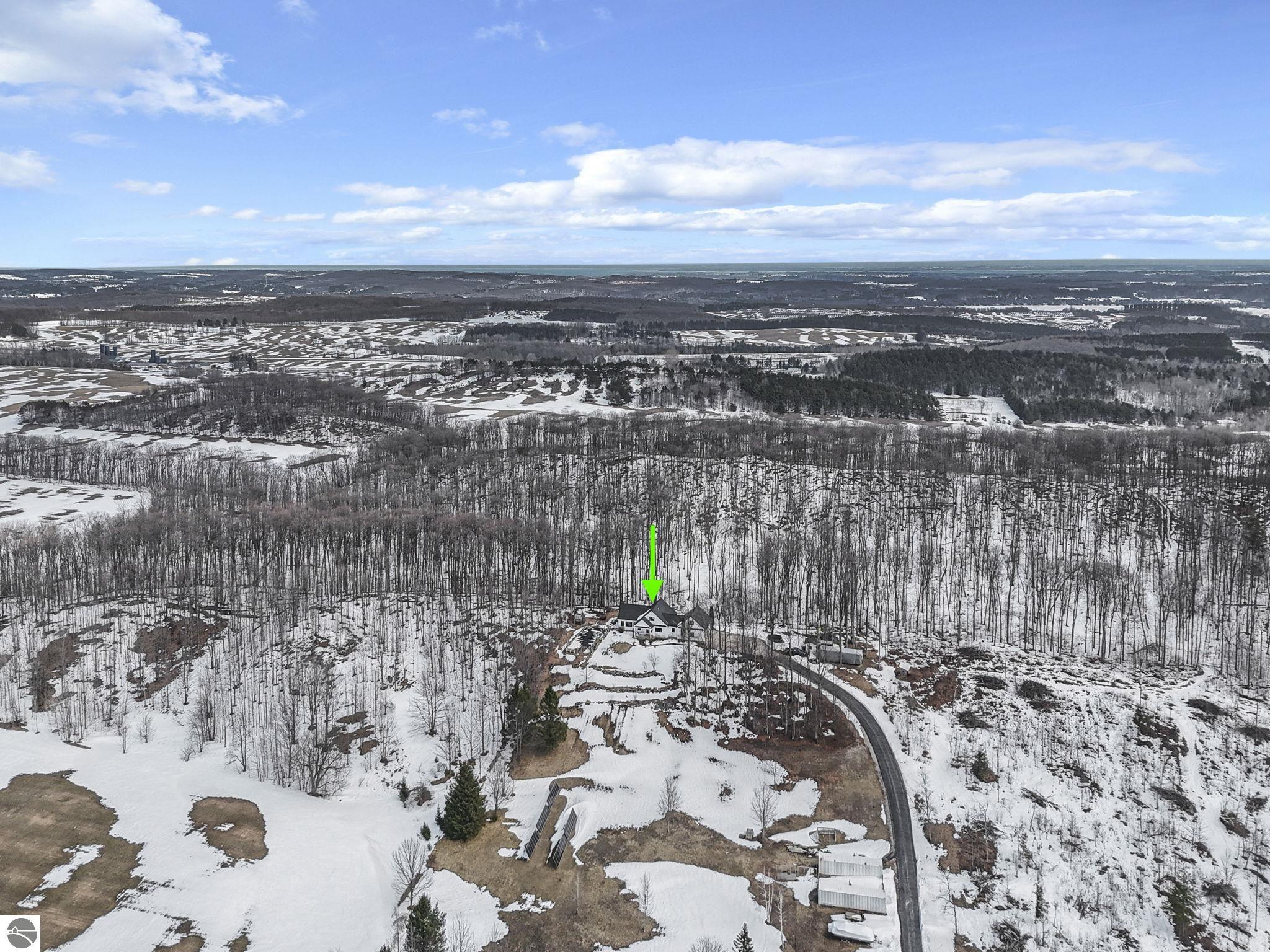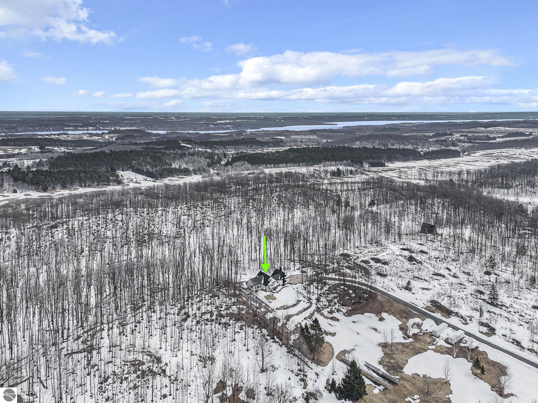 Escape to your own private oasis on 10 rolling acres in highly sought-after Leelanau County, where refined comfort meets natural beauty. This exceptional 1.5-story home offers an abundance of finished sq. ft. with a light filled open design ideal for both everyday living and entertaining. Featuring 4 bedrooms, 3.5 baths, and a versatile bonus room, the home showcases quality throughout. The newly remodeled island kitchen is appointed with stainless steel appliances, granite countertops and abundant cabinetry, while rich hardwood flooring flows through the main level. The inviting living room features a wood-burning fireplace, built-ins & access to rear patio. Main floor primary suite offers a spa like en-suite with soaking tub and tiled walk-in shower. Finished walkout lower level offers family area, rec-area, office area, gas log fireplace, 4th bedroom, full bath and storage rooms. Additional highlights include a finished heated garage, main floor laundry/mudroom, back-up generator and solar panels, fiber optic internet via point broadband service. Thoughtfully designed outdoor spaces with multiple seating areas and extensive landscaping create a serene setting. Enjoy peaceful privacy just a short drive to Lake Michigan, Inland Lakes and nearby villages. Take in all that Pure Leelanau County has to offer!