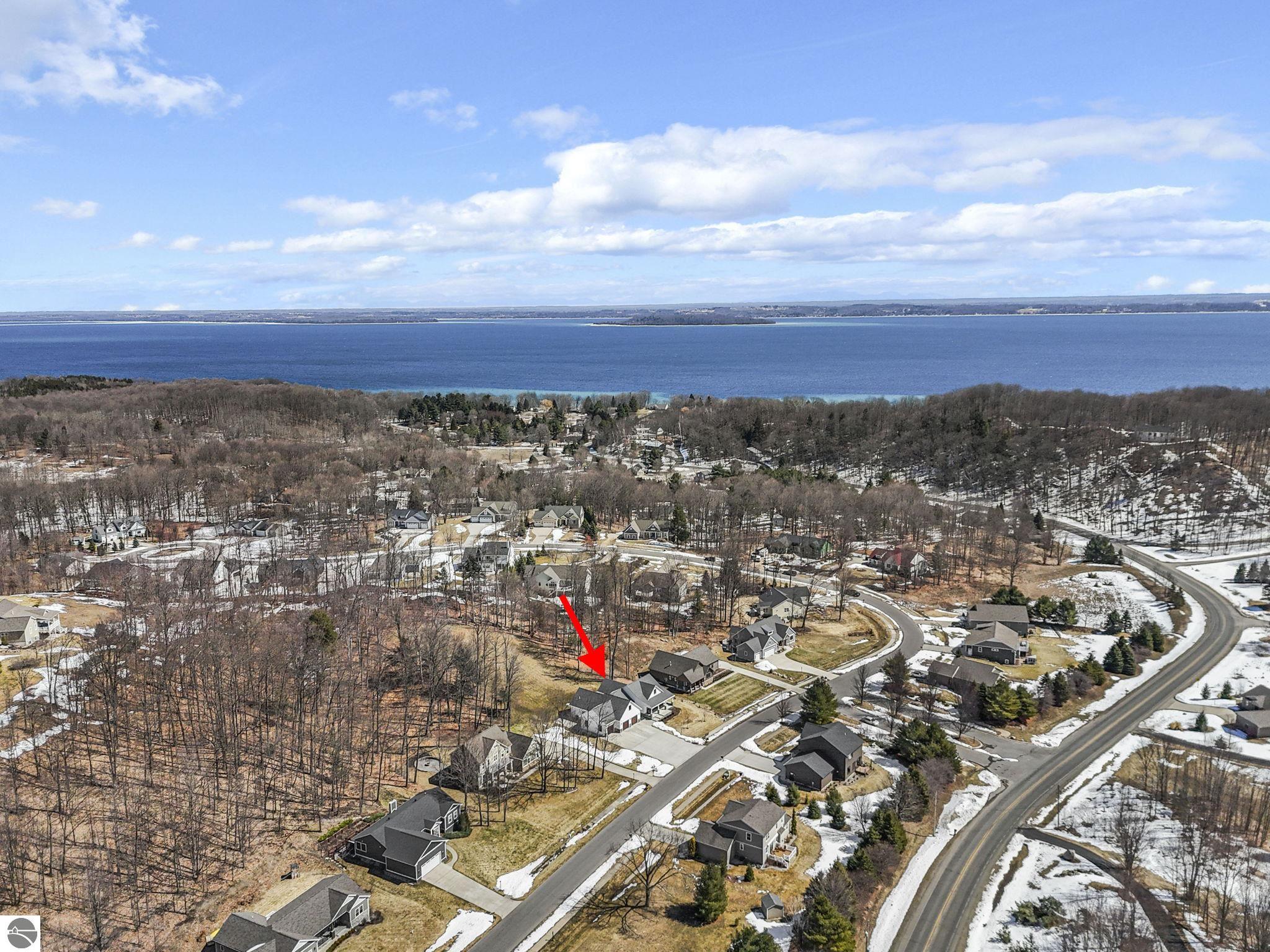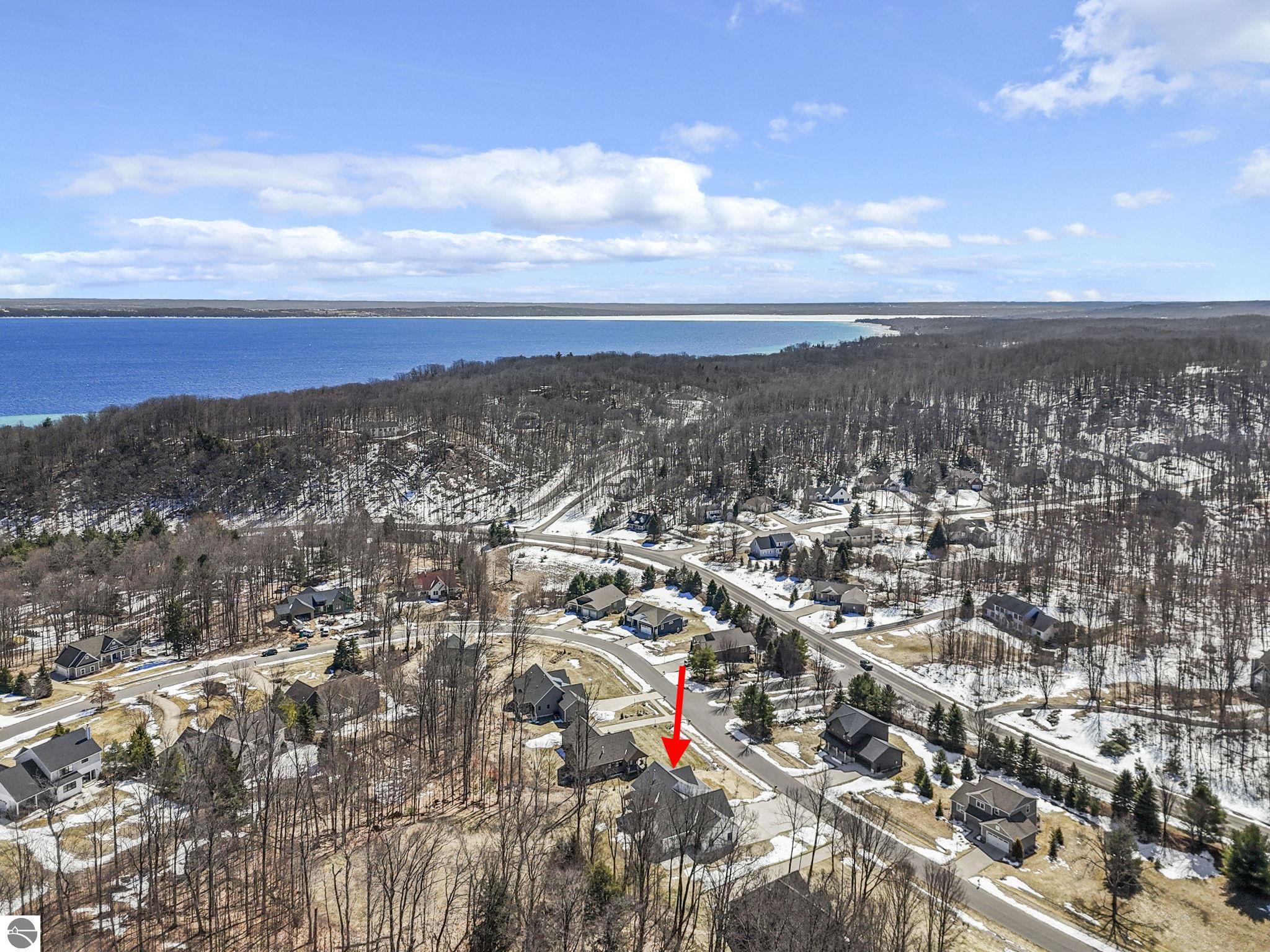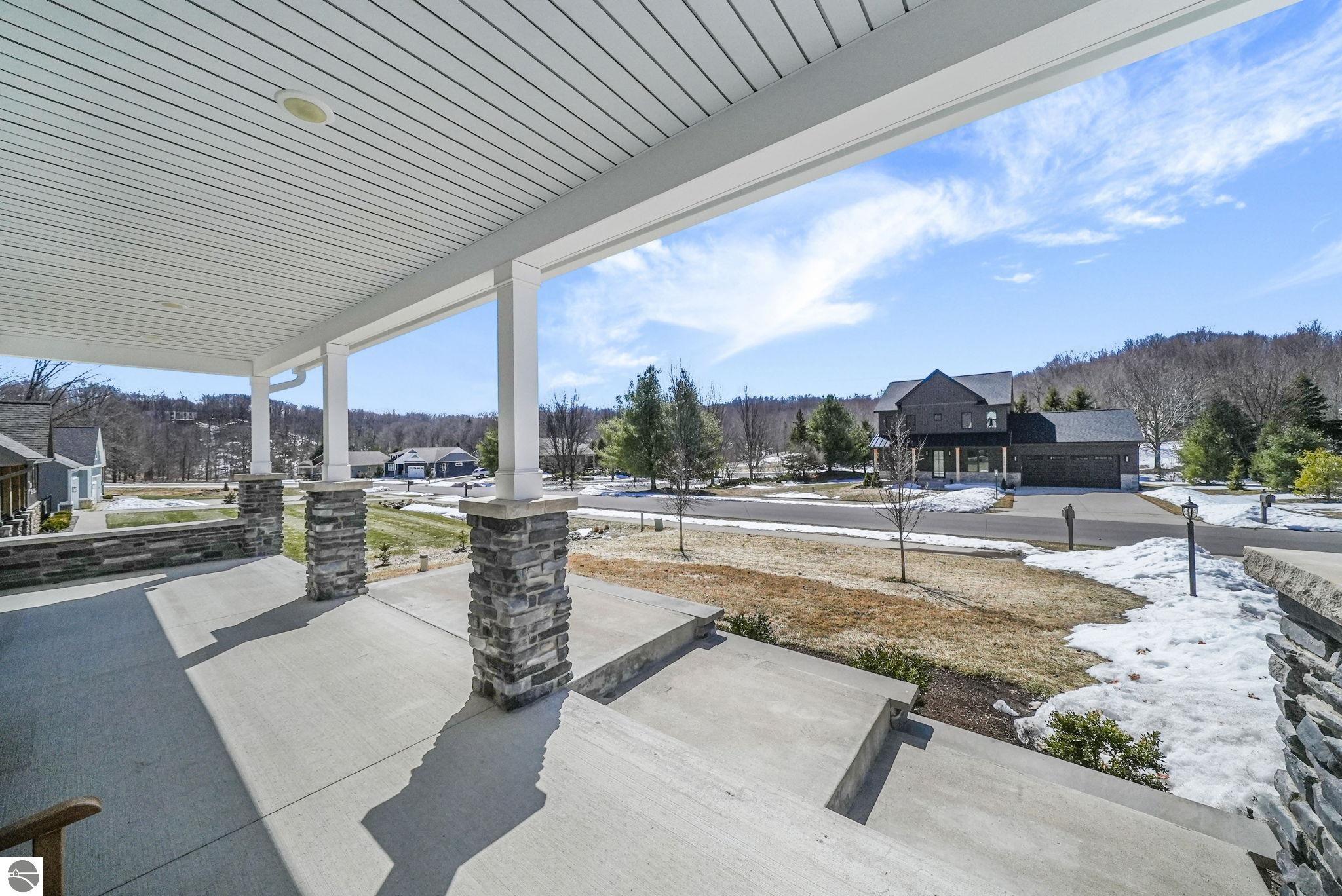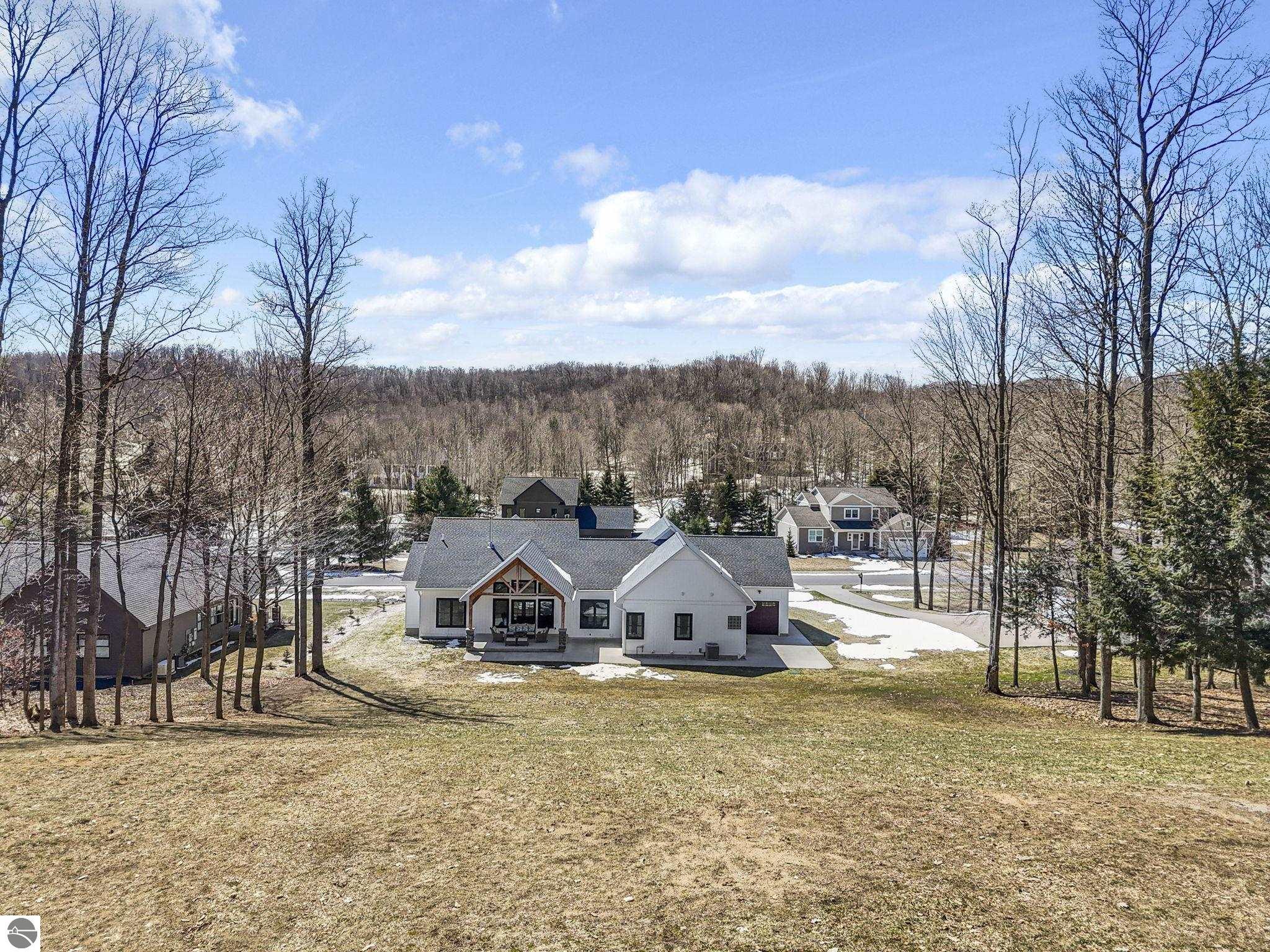 This stunning custom-built home showcases exceptional attention to detail throughout. Nestled in desirable Leelanau Highlands and if you are looking for space, this home delivers. Offering plenty of room to live, relax and entertain. Bright, open living areas feature cathedral ceilings and rich hardwood and tile flooring throughout the main level. The gracious living room with fireplace flows seamlessly to a large covered rear porch perfect for outdoor entertaining. The island kitchen is thoughtfully designed with butcher block countertops, stainless double wall ovens, gas cook top and a walk-in pantry. Enjoy the ease of main floor living, including a spacious primary suite with a well-appointed en-suite featuring a soaking tub, tiled walk-in shower, and walk-in closet. Two additional bedrooms are thoughtfully situated with a Jack and Jill bath. The finished lower level expands your living space with a large family room, wet bar, fourth bedroom, and full bath. A mudroom and half bath are conveniently located off the finished three-car garage, which includes a drive-thru stall. Experience the beauty and serenity of Leelanau County living, just a short drive from Traverse City.